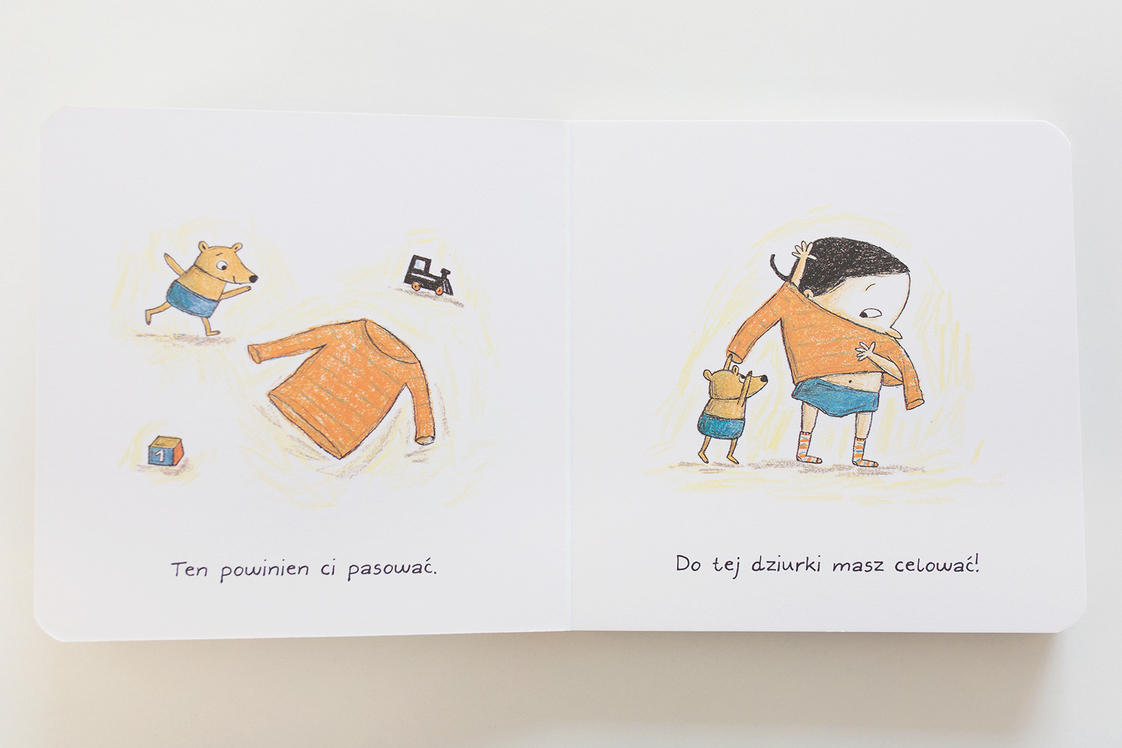 Duet szwedzkich autorek (znanych zapewne mamom starszych dzieci) przygotował coś dla najmłodszych czytelników. Ich cztery wspólnie napisane książeczki wyróżnia kameralność i zdolność do zadziwiania się światem, z jego dźwiękami i niespodziankami. Auto robi brum, Sweter włóż i już i pozostałe książki cyklu pokazują świat pełen zjawisk do odkrycia. Proste sceny z codziennego życia (ubieranie, pieszczoty, zabawa w piaskownicy) pokazane są w sposób nieprzekombinowany i dosłowny. Cenimy je szczególnie za slapstickowe scenki, tych nigdy dość, z nich się nie wyrasta. No i za urodę.