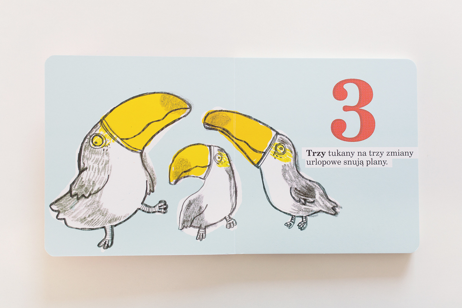 Młodej polskiej ilustratorce udało się stworzyć rymowaną książeczkę, która już od siedmiu lat nie przestaje być hitem kolejnych roczniaków. Kluczem do sukcesu są zabawne, świetnie zrytmizowane i lekko absurdalne wierszyki, a także ciekawie narysowani zwierzęcy bohaterowie. Nauka liczenia do 10 staje się pestką, a sama wyliczanka nie daje się zapomnieć – nadal recytują ją z pamięci ci, którzy dziś uczą się już pierwiastków. Pozycja obowiązkowa i do zachowania na pamiątkę.