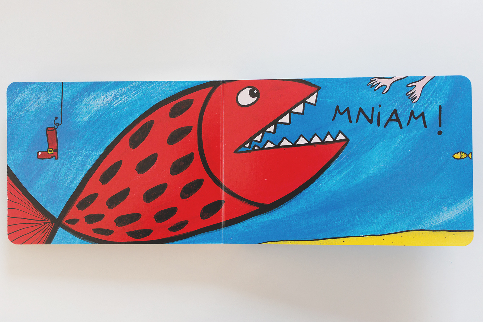 Hervé Tullet znany jest z książek totalnie interaktywnych, wciągających dzieci w zabawę, nie gorzej niż telefoniczne aplikacje, za co pewnie wiele z was jest mu wdzięcznych. Duży czy mały to propozycja dla najmłodszych. Tematem jest rozmiar: fakt, że coś postrzegamy jako duże lub małe jest względny. Okazuje się, że można się tym bawić i to językiem zrozumiałym dla dzieci. Już sam „rosnący” format książki przyciąga uwagę, a na koniec mamy puentę, i to nie byle jaką! Hervé Tullet wie, że nawet najmłodsze dzieci mają poczucie humoru i doceniają, kiedy mruga się do nich okiem.