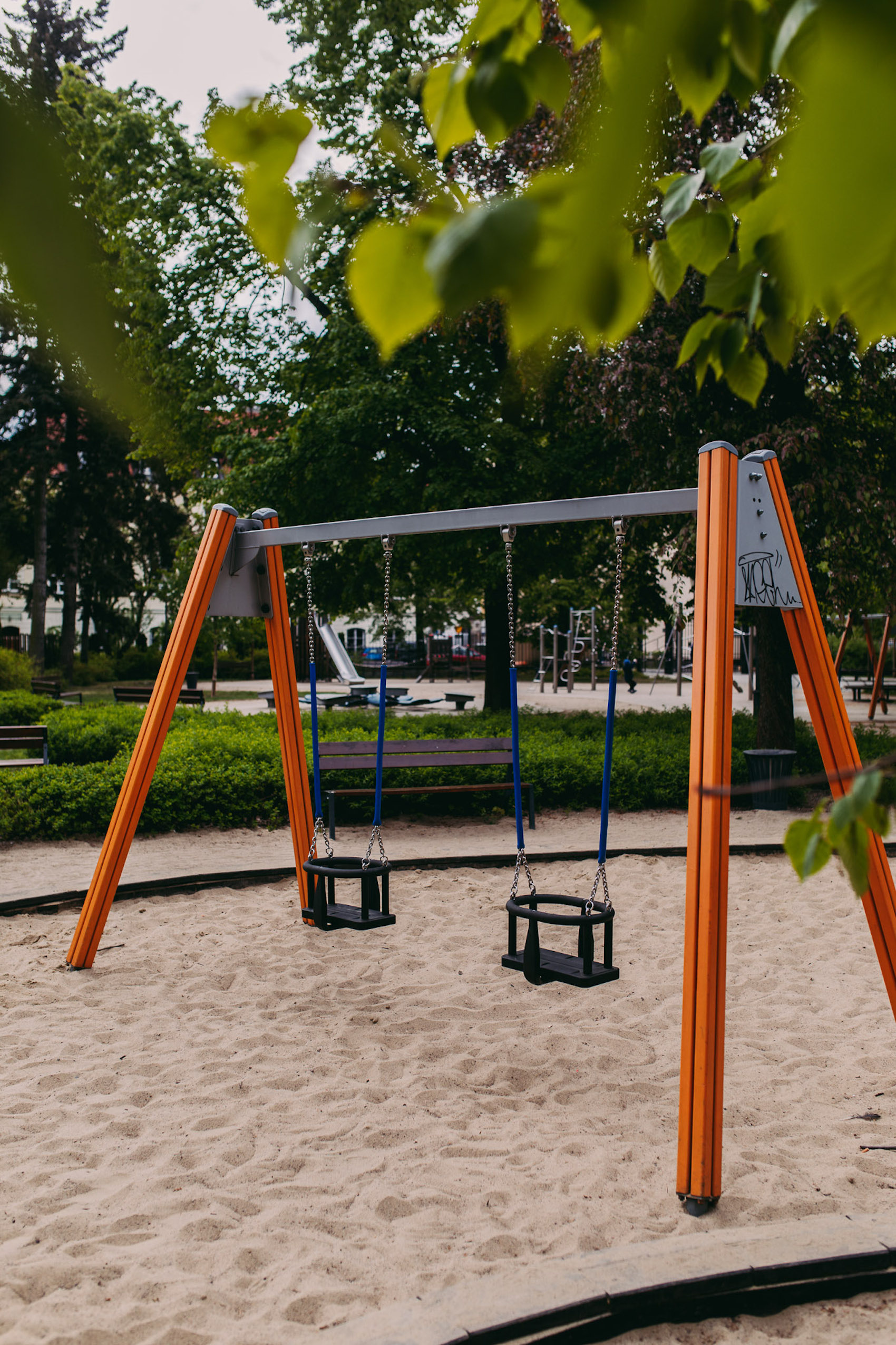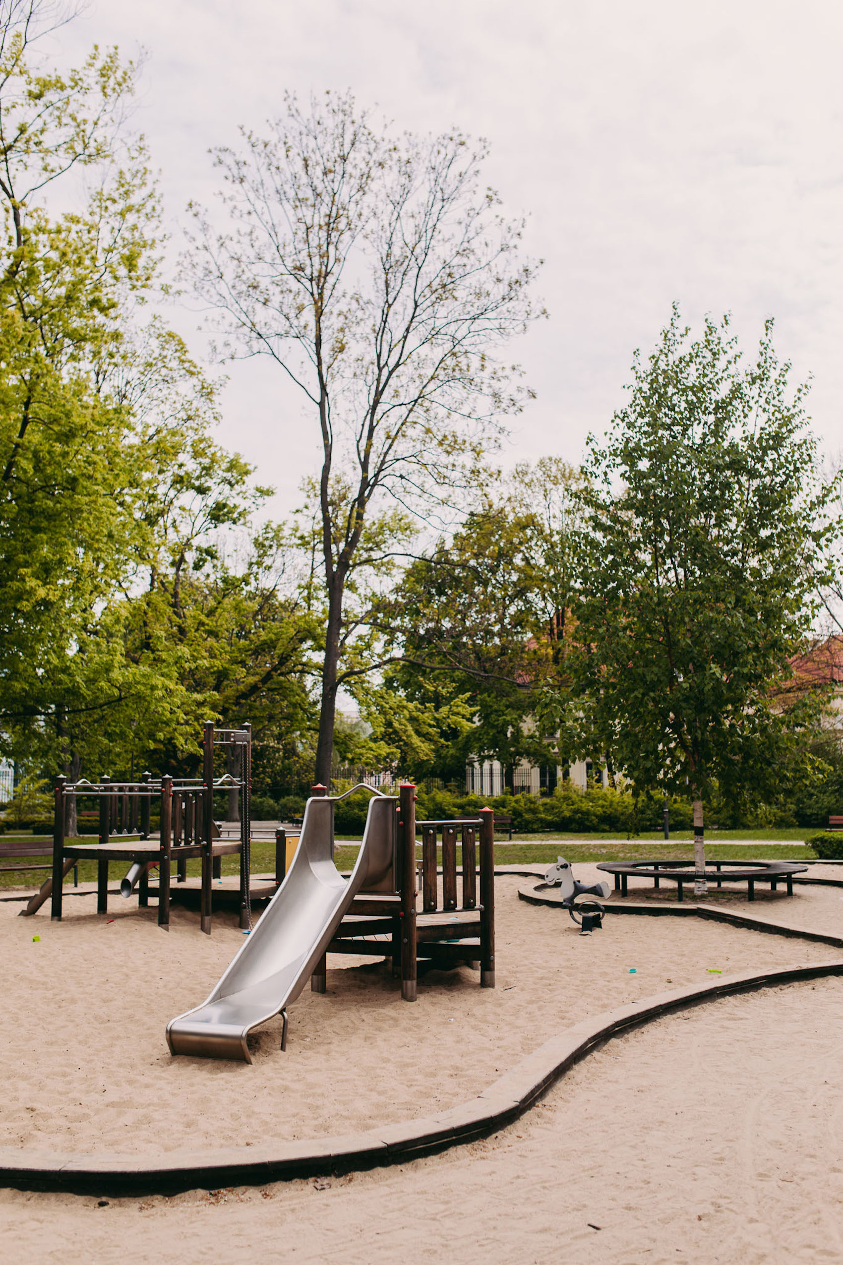 Plac zabaw pretekstem do rozmów o baroku? Czemu nie. Park Krasińskich rozciągnięty od ulicy Długiej po Muranów i ulicę Andersa to miejsce wyjątkowe. Założony w 1676 roku do czasu powstania Ogrodu Saskiego była największym parkiem w Warszawie. Po zakończonej rewitalizacji dzieciaki bawią się na placu z widokiem na dostojną siedzibę Biblioteki Narodowej. Otwarty kilka lat temu plac zabaw jest podzielony na 2 strefy wiekowe. W tej dla najmłodszych oprócz domku, zjeżdżalni czy huśtawek absolutnie największym hitem wśród dzieci są metalowe koparki w piaskownicy. Dziecko siada i wprawia w ruch łopatę niczym czołowy brygadzista. Kto wie, może dokopie się do archeologicznych skarbów w tej historycznej części stolicy? Po placu obowiązkowa inspekcja kwitnących bzów, kwiecistych klombów oraz pobliskiego stawu parkowego. Duży plus za drewniane zabawki oraz podzielenie placu na dwie strefy.