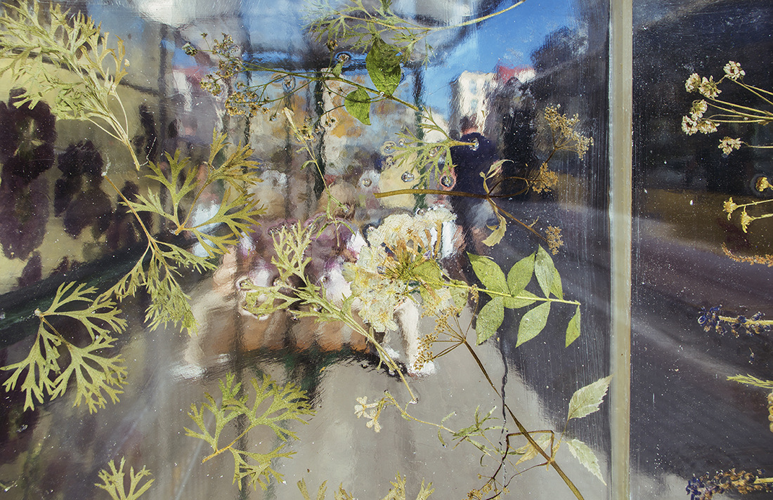 Dominika Cebula jest studentką trzeciego roku grafiki na Akademii Sztuk Pięknych w Łodzi, a jej instalacja artystyczna zatytułowana „Nostalgia” powstała w ramach twórczego programu „Przecieki Sztuki” Łódzkiego Centrum Wydarzeń. Trudno się nie rozmarzyć, patrząc na setki liści, róż, bratków i innych kwiatów zatopionych w transparentnej żywicy. Lokalizacja przystanku jest nieprzypadkowa, bowiem przy Placu Dąbrowskiego od lat działa wiele całodobowych kwiaciarni i dobrze było podkreślić romantyczny charakter tej części miasta. Skontrastowanie kruchych kwiatów z industrialną zabudową daje rozczulający efekt i sprawia, że chce się świętować każde opóźnienie tramwaju.