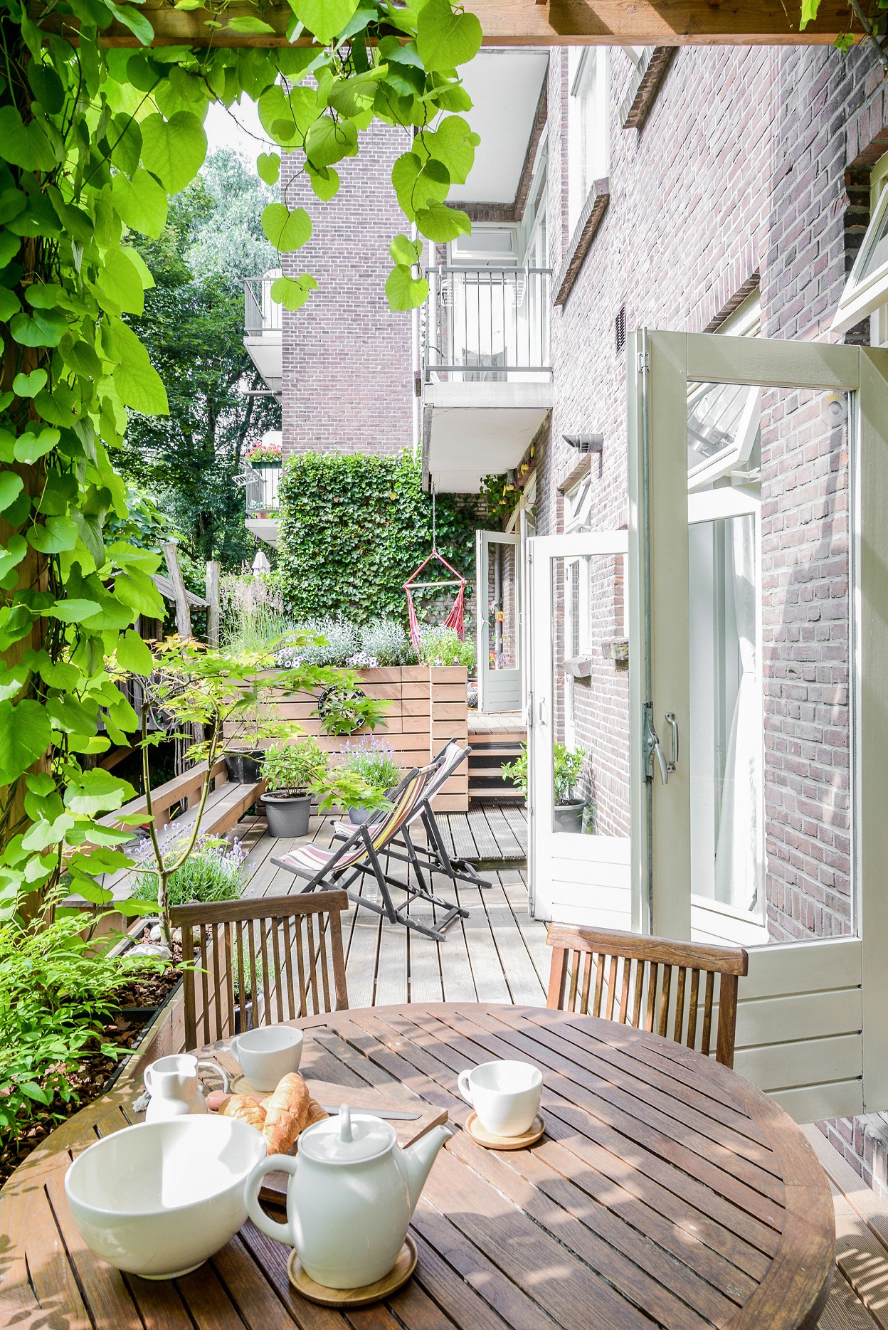 Nasz dzień zaczyna się od pobudki naszego 4 – letniego Roberta ok. 6 rano. Wspólne śniadanie i szykowanie chłopców do szkoły, która zaczyna się o 8.30. O godz. 15 jedno z nas odbierze chłopców, zajmie się zawożeniem ich na zajęcia sportowe i spędzanie z nimi czasu. Drugie w tym czasie będzie pracować. O 17.30 siądziemy wspólnie do stołu a potem spędzimy razem wieczór. Prowadzimy intensywne życie zawodowe a chłopcy mają dużo zajęć w tygodniu, więc często w weekendy nie mamy ochoty na specjalne aktywności. Wolimy zwyczajne nic nie robienie. Mamy dosyć duży – jak na warunki miejskie – ogród i, jeśli pogoda dopisuje, spędzamy tutaj czas, sami lub ze znajomymi. To jest nasza oaza spokoju i zieleni.