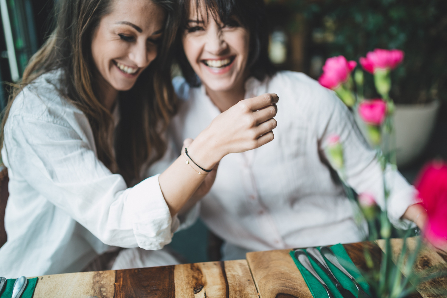Wolałabym uniknąć banału, ale naprawdę wyglądają jak siostry. Te same uśmiechy, sylwetki, ta sama energia, która przyciąga ludzi. Mogłyby mieć jedną szafę, bo gust też jak jeden. Oglądając biżuterię Apart, wiedziały, co im się spodoba. Obie stawiają na delikatność.