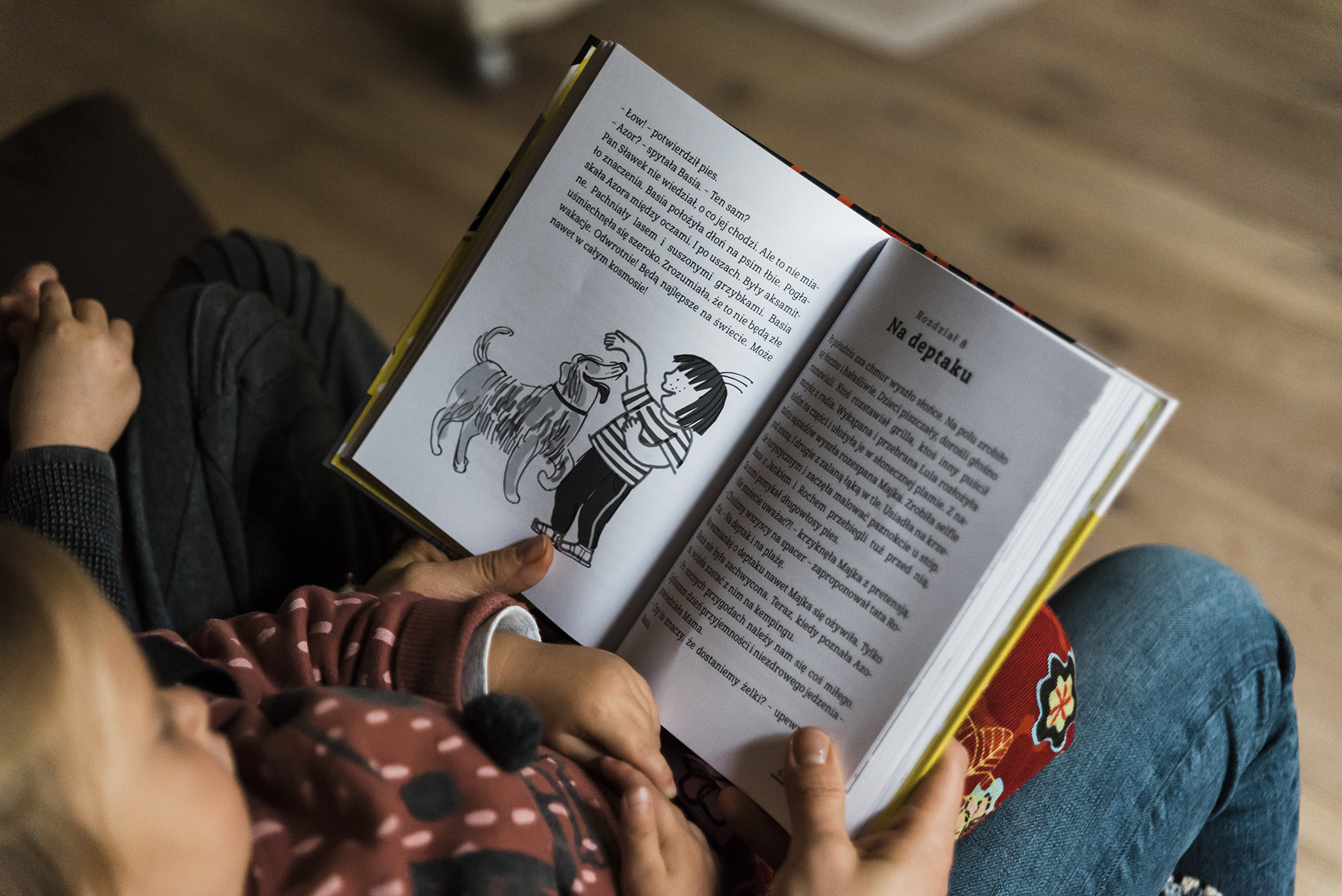 Wspominałam już kiedyś, że lubimy czytać książki dłuższe. Sam fakt rozdziałów budzi w moich przedszkolakach entuzjazm, lekturę najczęściej rozkładamy na kilka wieczorów. Zdumiewa mnie, jak doskonale zapamiętują fabułę i wszystkich pojawiających się bohaterów, bo przyznam, że mi zdarzyło się już kilka razy zagubić. Z „Basią i latem pod psem” było nieco inaczej, po pierwsze trudno było nam się od książki oderwać, po drugie sama znalazłam w języku autorki, który świetnie między innymi oddaje rodzinne dialogi, dużo przyjemności. Śmialiśmy się w tych samych momentach, a rozdziały, w których autorka otwierała troski bohaterki, nie pozwalały nam odłożyć książki na jutro, natychmiast chcieliśmy wiedzieć, co będzie dalej.