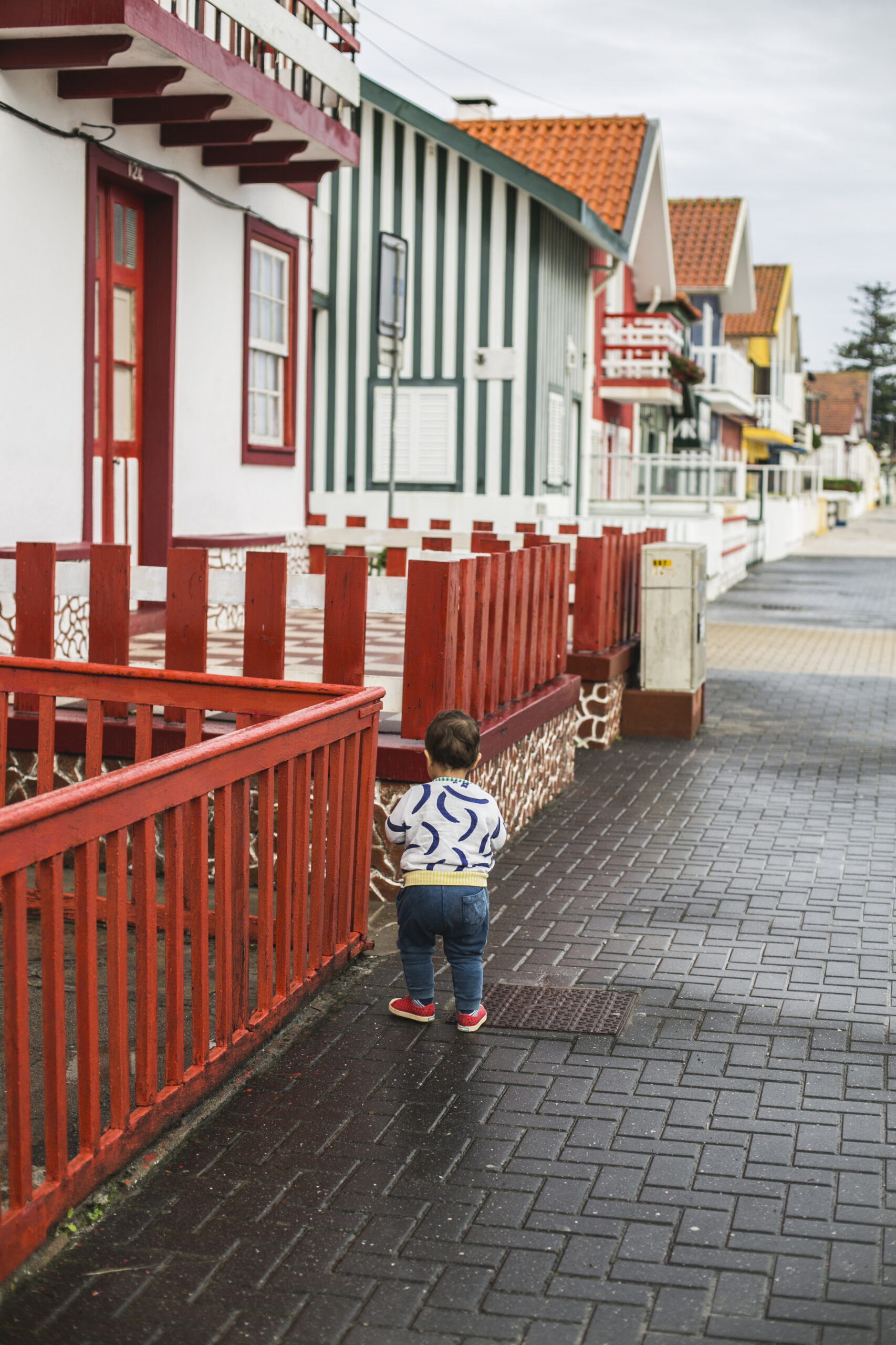 Koszmarna! Jak ze skandynawskiego kryminału. Było chłodno i padał deszcz. Nie! On nie padał, on postanowił zalać to miasto! Przez to domki na zdjęciach wyglądają nieco posępnie i na pierwszy rzut oka można pomyśleć o Norwegii, ale z perspektywy czasu wydaje mi się to bardziej klimatyczne doświadczenie. Zimno na tyle nas zaskoczyło, że nie mieliśmy ciepłych ciuchów ani dla siebie ani dla Teo, w Lizbonie z której przyjechaliśmy było 25 stopni!, więc my staraliśmy się przetrwać, a Teo chodził w kocu zawiązanym na szyi jak w magicznej pelerynie!