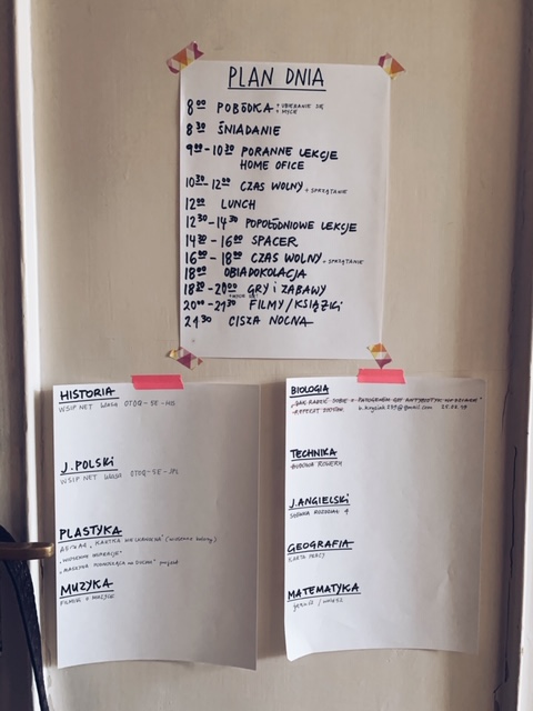 Mamy ustalony plan dnia. Wspólnie poza lekcjami gramy w gry, oglądamy filmy, odhaczamy wszystkie zaległe książki z zagadkami, gotujemy (w tym robimy rzeczy, których do tej pory nigdy nie robiliśmy, a bardzo chcieliśmy: domowa pizza, lizaki, krówki), rozmawiamy też z rodziną i przyjaciółmi na Skype, Janek tańczy i planujemy domowe eksperymenty według instrukcji ze strony Centrum Nauki Kopernik.
