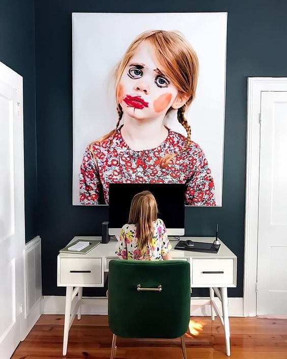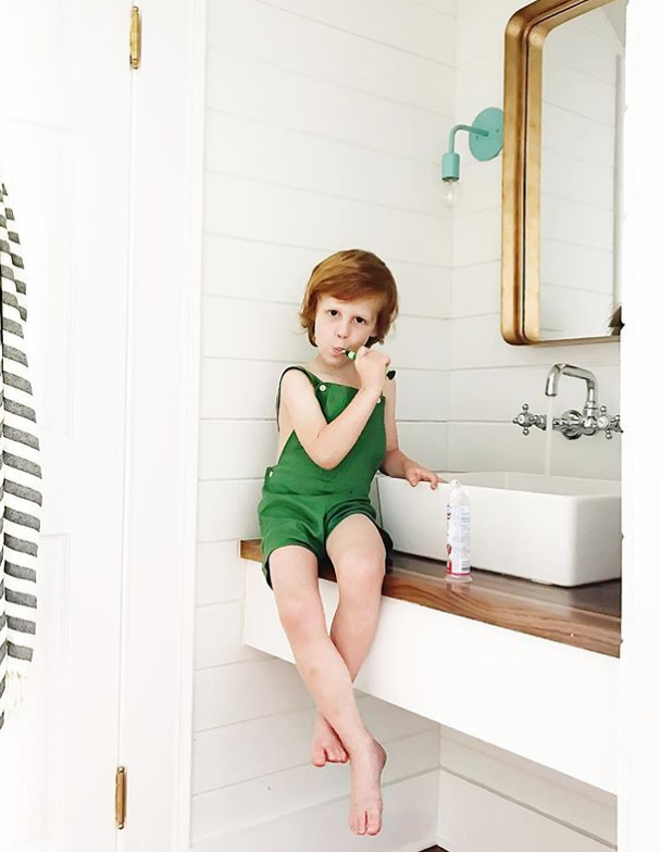 Mogłabym się schować i przezimować resztki zimy w jej domu, który ma, bagatela, 130 lat. Gray miksuje nowe i stare, zestawia odważnie kolory – jakaż to uczta dla moich oczu, tak już zmęczonych tą zimową szarugą. Gray, jak przyznała w tym wywiadzie, nie boi się eksperymentów odkąd ma dwójkę dzieci, podąża za nimi z obiektywem, podpatruje. Dziś ma za sobą kampanie dla wielu marek dziecięcych. Nic na siłę, jak sama mówi, w fotografii dzieci należy obniżyć poprzeczkę oczekiwań, dać się zaprosić do ich świata, płynąć razem z nimi. Tu scenariusze i plany odkłada się na bok. Efekt? Mam wrażenie, że w takim domu nawet mycie zębów staje się wyjątkowym kadrem. Zwłaszcza jeśli kolor zielonego kinkietu przypadkowo pasuje do zieleni spodni chłopca… Przypadkowo?