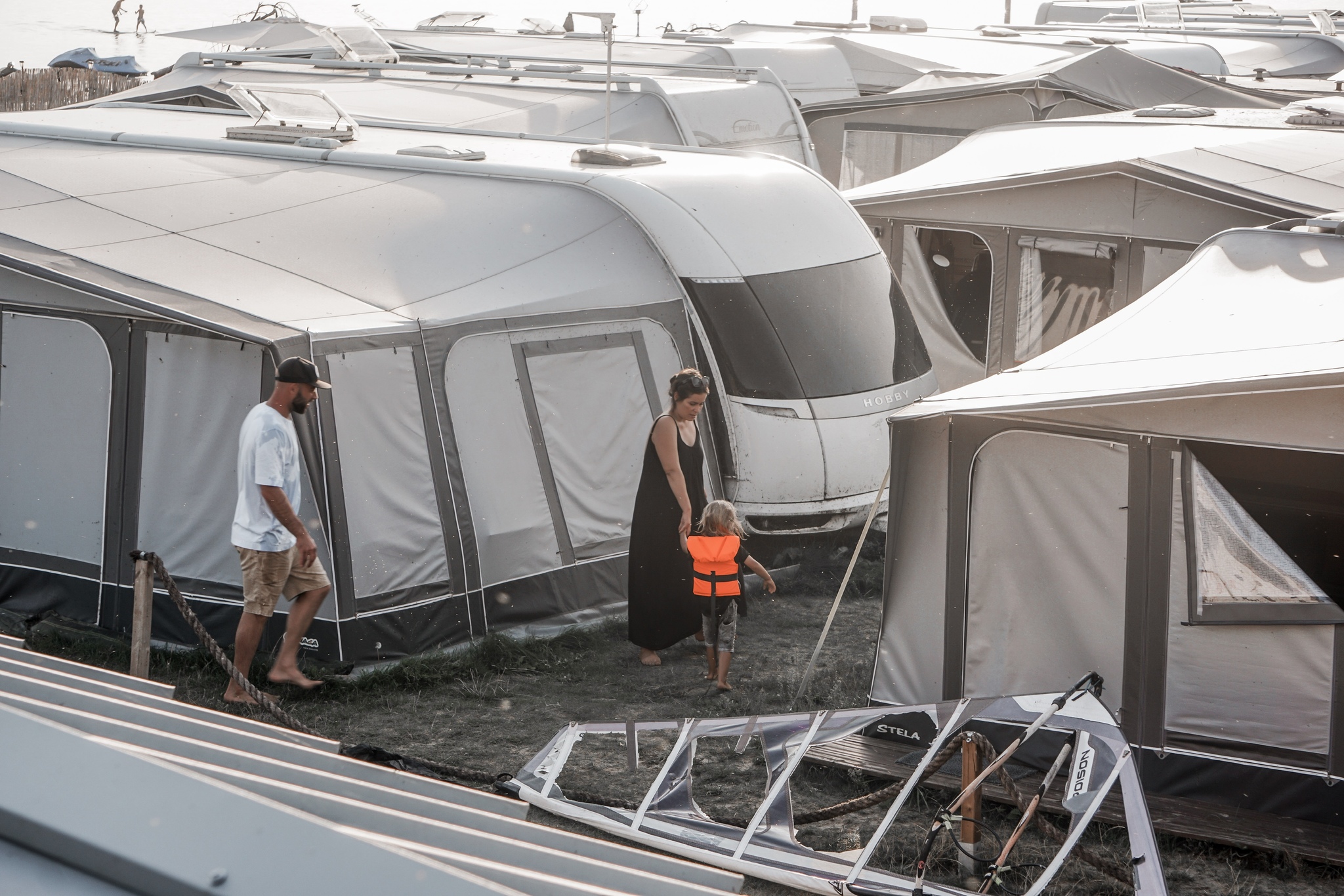 Ja i Maciek na Hel przyjeżdżaliśmy już w czasach licealnych – wtedy jeszcze osobno. Nasze pierwsze wspólne rodzinne wakacje spędziliśmy oczywiście również tutaj. Uwielbiamy piękno tego miejsca, sporty wodne i co najważniejsze – ludzi! 8 lat temu nasi przyjaciele zaproponowali nam przyczepę „na spółkę”. Nie zastanawialiśmy się zbyt długo… i wsiąknęliśmy na dobre. Macieja dodatkowo pochłonął kitesurfing. Od tego czasu wiele się zmieniło: mamy już własną przyczepę od 5 sezonów, nasi znajomi również. Pojawiły się dzieci i radość rodzinnego spędzania czasu. Od tego czasu każde wakacje staramy się spędzać tutaj, a na dalsze wojaże udajemy się jak w Polsce robi się szaro i ponuro.