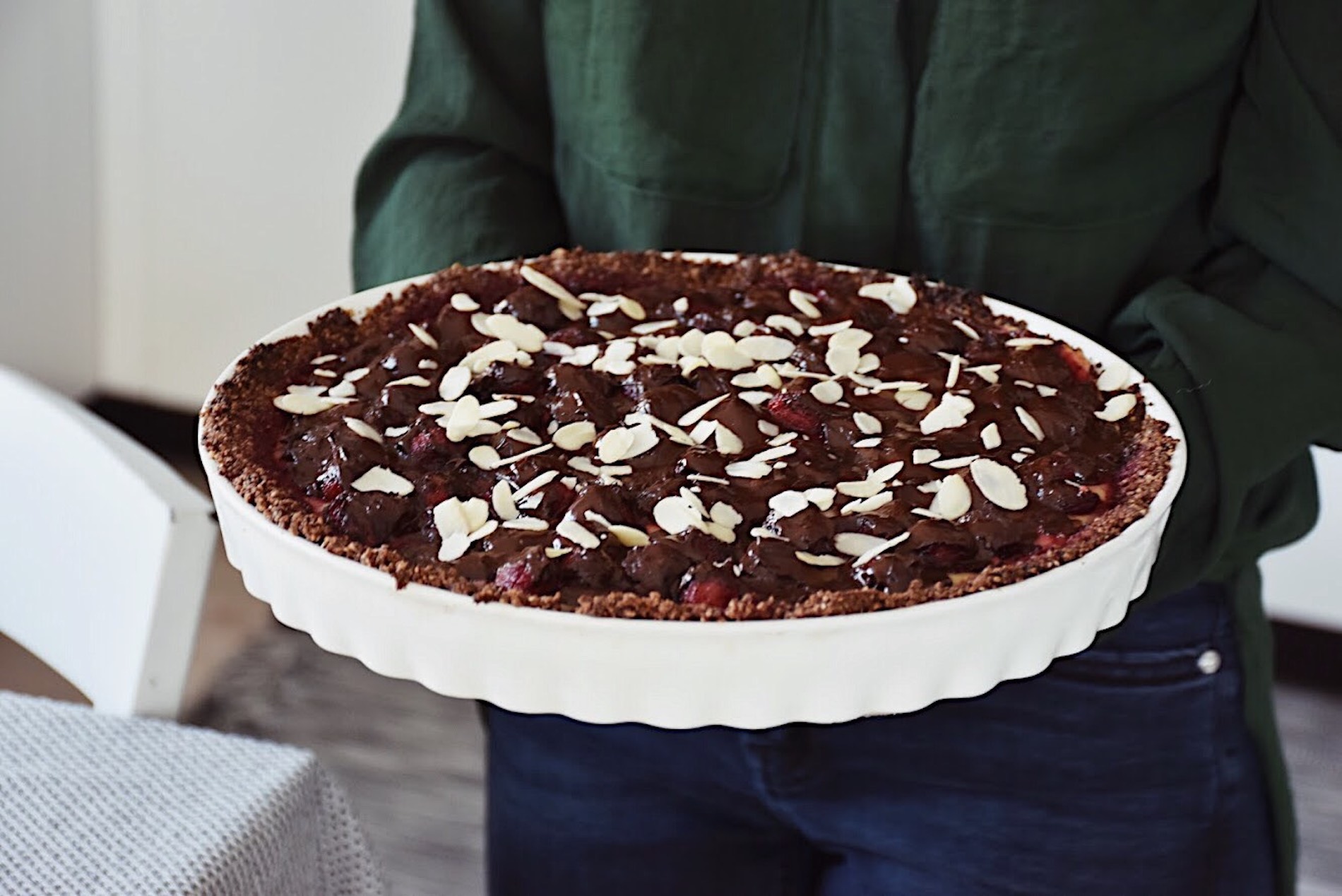 Migdałowa tarta z kremem jaglanym i truskawkami