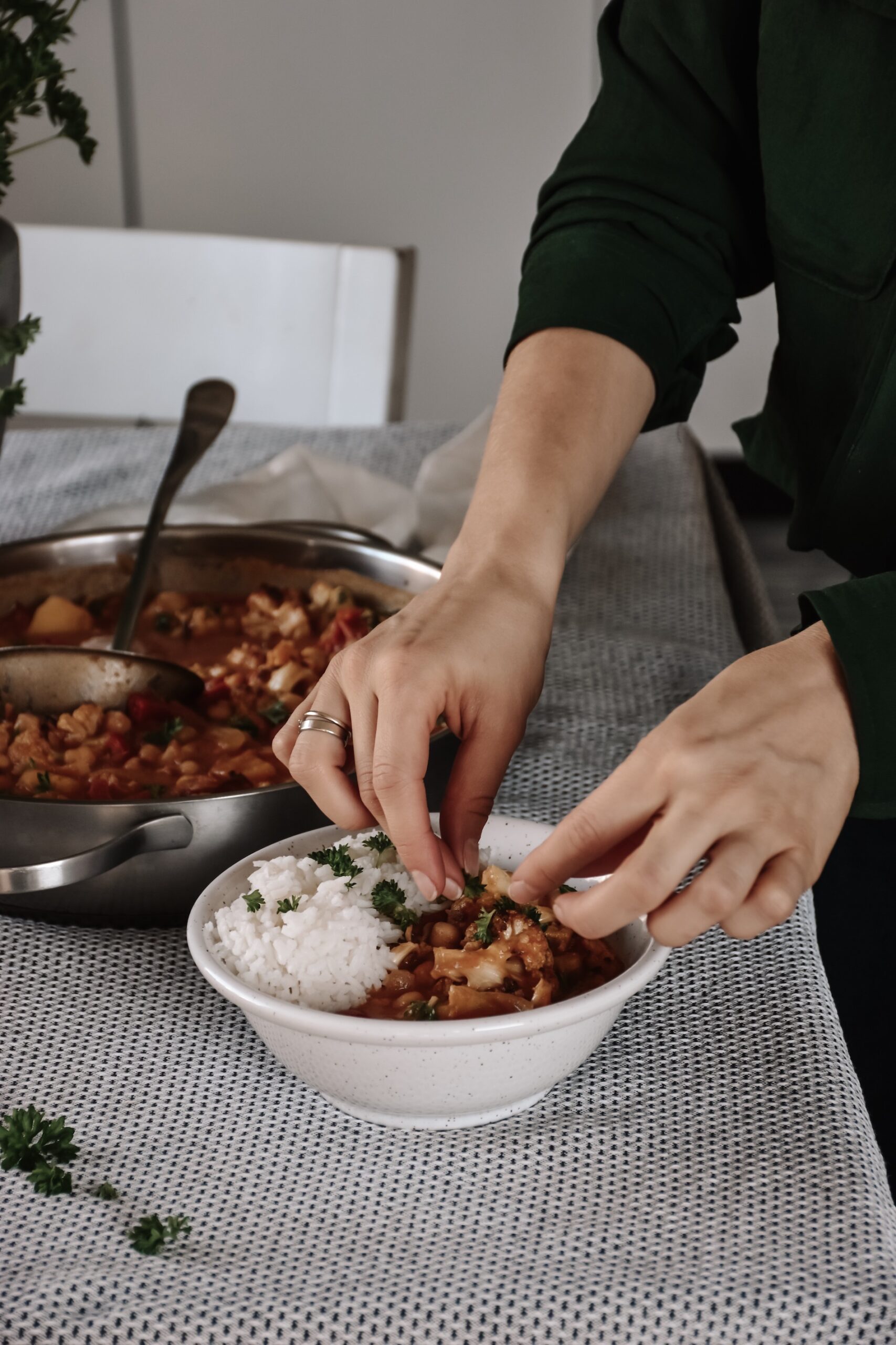 To danie na pewno was rozgrzeje! Można podawać je tradycyjnie z ryżem jaśminowym lub basmati albo z chlebkiem naan. Ale również z ugotowaną na sypko kaszą jaglaną.