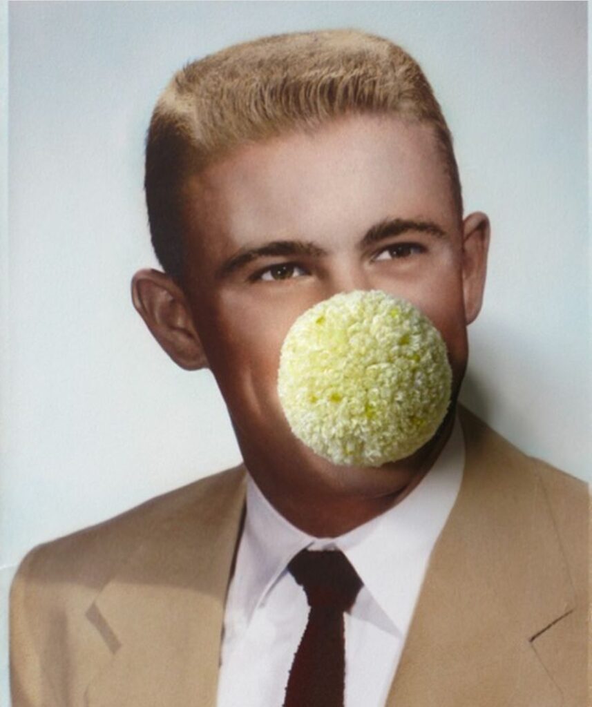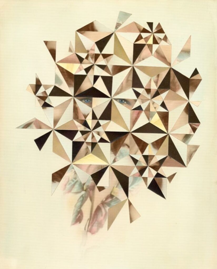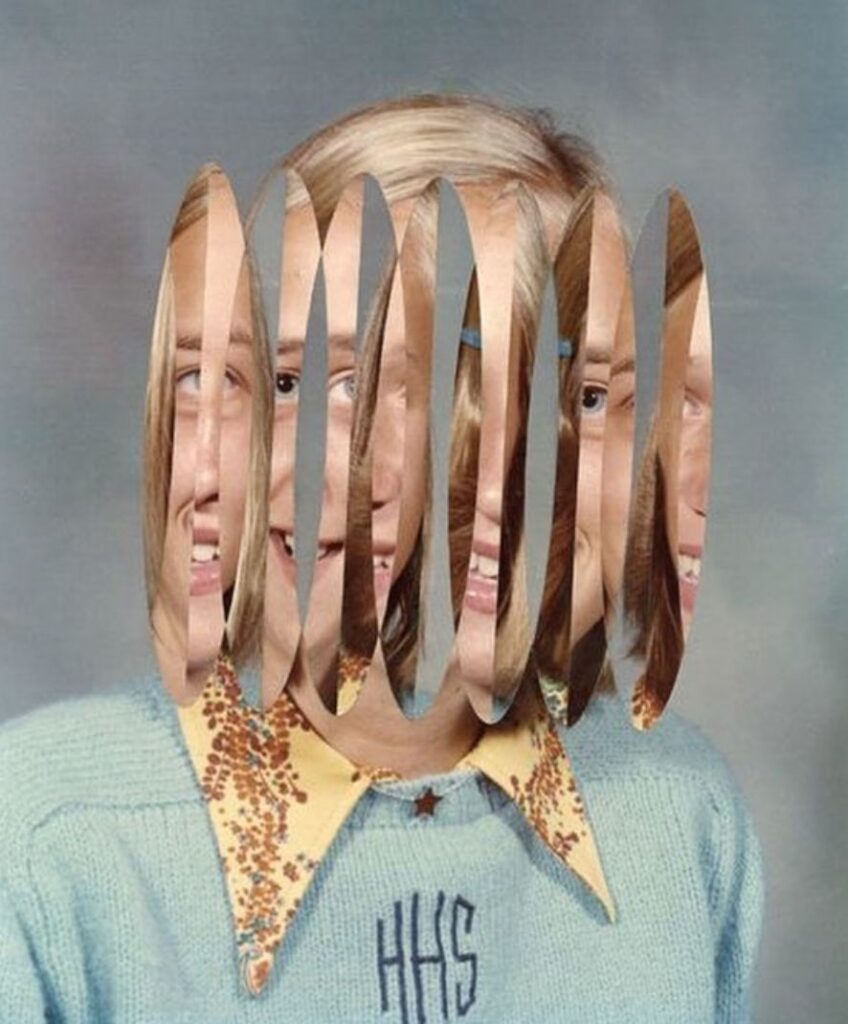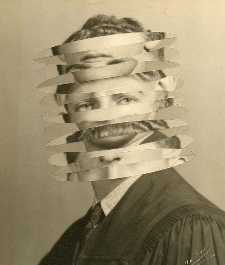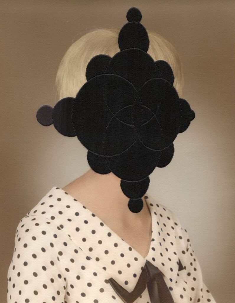 Tekst ilustrują zdjęcia prac brytyjskiej artystki Julie Cockburn. Rozmaite techniki – haftu, kolażu i komputerowego, kalejdoskopowego przetwarzania zdjęć – pozwalają jej zadawać pytania o ludzką tożsamość. Prace Julii Cocburn często opierają się o archiwalne, anonimowe portrety i wydobywają kontrast między tym, jak wyglądamy, jak się czujemy, co myślimy, a tym, kim w głębi siebie jesteśmy.