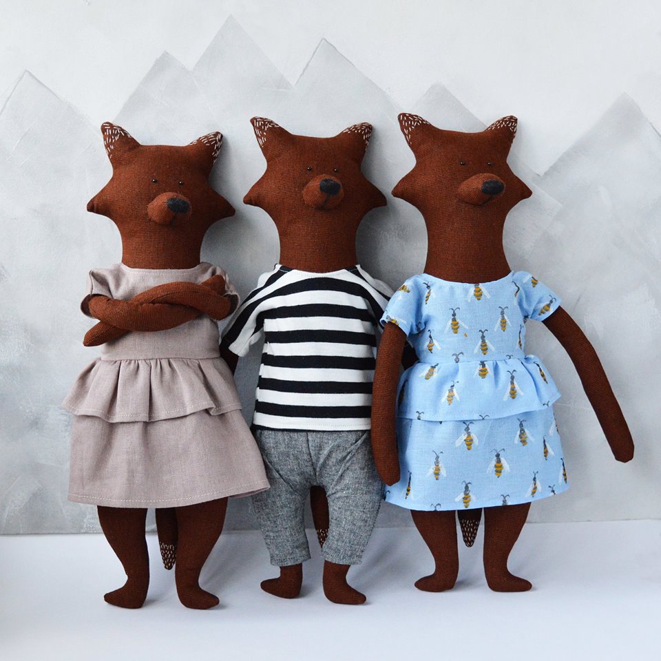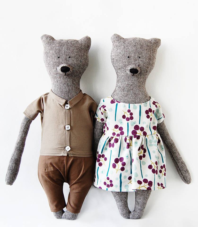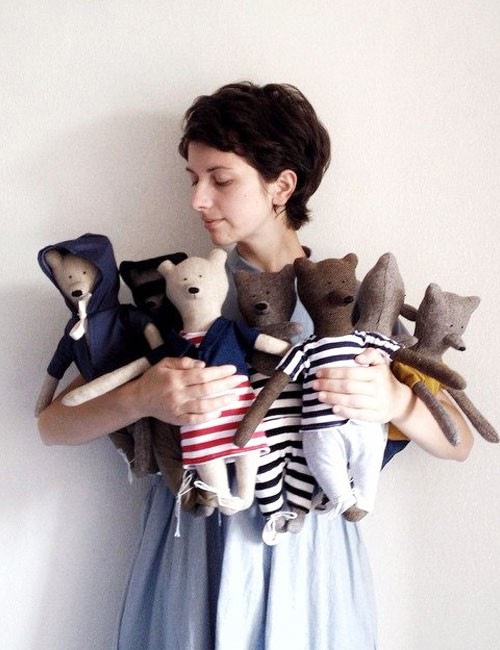 Podział obowiązków jest jasny i klarowny. Tanya jest od szycia długorękich (bo aż rwą się do przytulania!) pluszaków a Nadia znakomicie radzi sobie z knuciem ich życiorysów i strojeniem każdego z członków lisiej, niedźwiedziej lub wilczej bandy w tweedowe marynarki, lniane wzorzyste sukienki i wełniane swetry. Bardzo wytwornie. Ubranka można też dokupić oddzielnie, wybór jest ogromny!