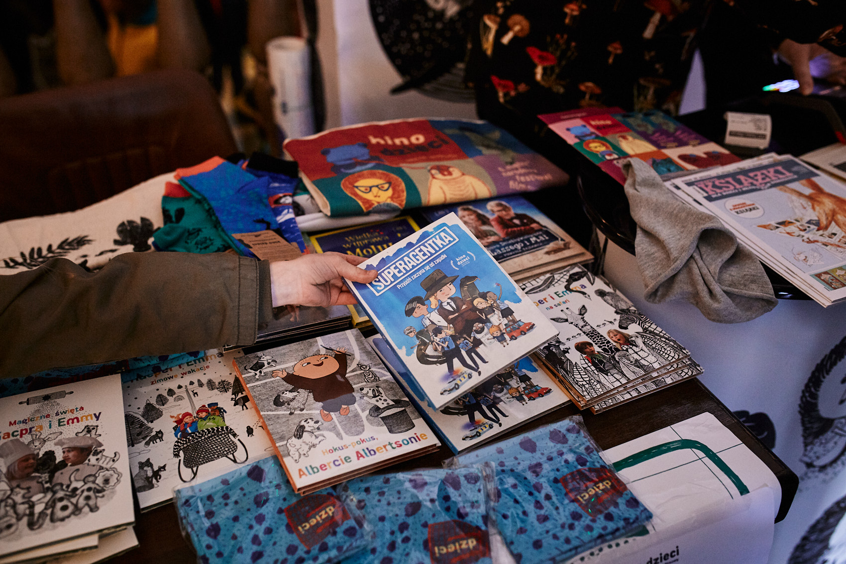 W rolę festiwalowych korespondentów wcielili się Kinga, Tymoteusz i Tola. Zacnie przygotowali się do zadania, bo już kilka dni wcześniej wertowali katalogi i wyklejali nadgarstki tatuażami. Kinga wspomina to tak: Usiedliśmy i razem zaplanowaliśmy pierwszy dzień. Oprócz obowiązkowej wody w bidonach, zabieramy herbatę w termosach – zimowa z imbirem dla Toli, gojnik dla Tymka. Uprażyliśmy popcorn, spakowaliśmy migdały i short bread upieczony dzień wcześniej. Przed południem zaplanowaliśmy seans filmu „Słynny najazd niedźwiedzi na Sycylię” i warsztaty sitodruku z Kwiaciarnią Grafiki. Drugim sobotnim typem był film „Jakub, Mimmi i gadające psy”. Wszystko udało nam się zobaczyć! Nie przepuściliśmy też seansu „Solana i Ludwika – Misja Księżyc”. Na kolejne dni festiwalu zostawiamy sobie „Operację Człowiek w Czerni”. Przeczytaliśmy już wszystkie części „Lassego i Mai”, więc motyw detektywistyczny jest nam bliski.