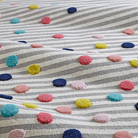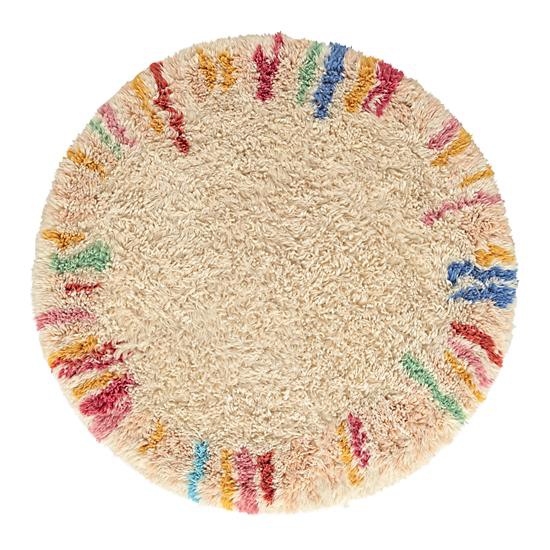 Naszym faworytem z tego sklepu jest dywan z bawełnianego jerseyu w kolorowe plamy, który to właśnie wypatrzyłyśmy u kilku mam blogerek zza Oceanu oraz mięciutki i puchaty okrągły dywan z nieregularnymi paskami koloru.