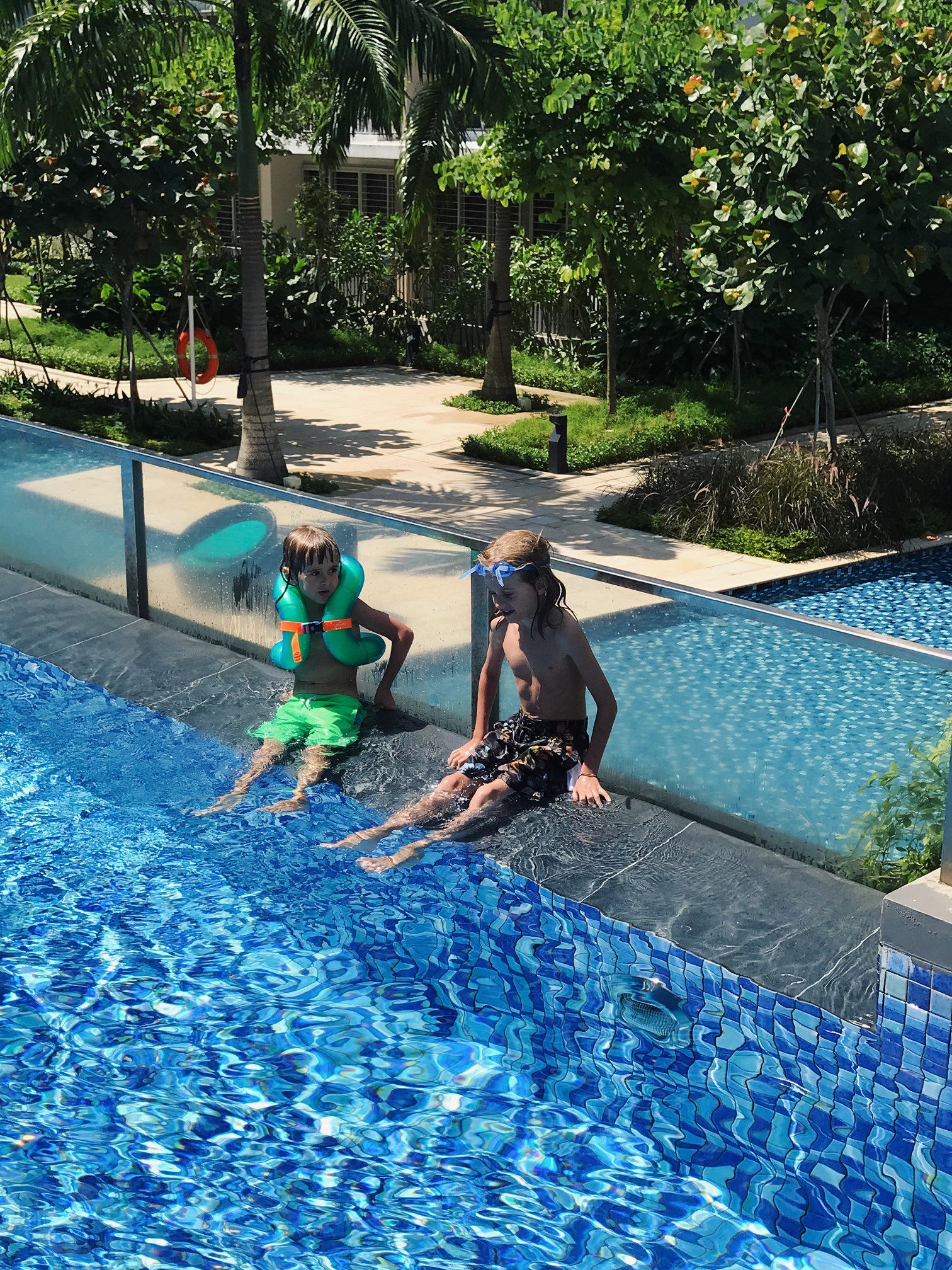 Ze względu na dzieci. Dzieciństwo dla mnie to nie downtown z wieżowcami i centrami handlowymi, ale bieganie boso po piasku czy jazda rowerem pomiędzy palmami, które kocham. Singapur często nazywany jest ogrodem Azji i rzeczywiście jest mega zielony. Codziennie mijam strelicje, papaje i bananowce, które rosną tu nawet przy przystanku autobusowym. Mieszkamy na parterze, mamy duży taras, na który wychodzi się z każdego pokoju i na nim toczy się większość naszego domowego życia. Tutaj jemy posiłki, tutaj rysujemy czy gramy w planszówki, a wieczorem relaksujemy się na leżakach. Taras ma też swoją furtkę, więc z głównych drzwi do mieszkania właściwie nie korzystamy. Jak większość ekspatów, mieszkamy w tzw. condominium, w skrócie ,,condo”, czyli zespole bloków z ochroną przypominających bardziej hotel 5-gwiazdkowy niż osiedle mieszkaniowe. Do codziennego użytku mamy 3 baseny, jacuzzi, siłownię, kort tenisowy, saunę, grille ze stołami i zlewami i tzw. function room, gdzie można urządzić np.urodziny.