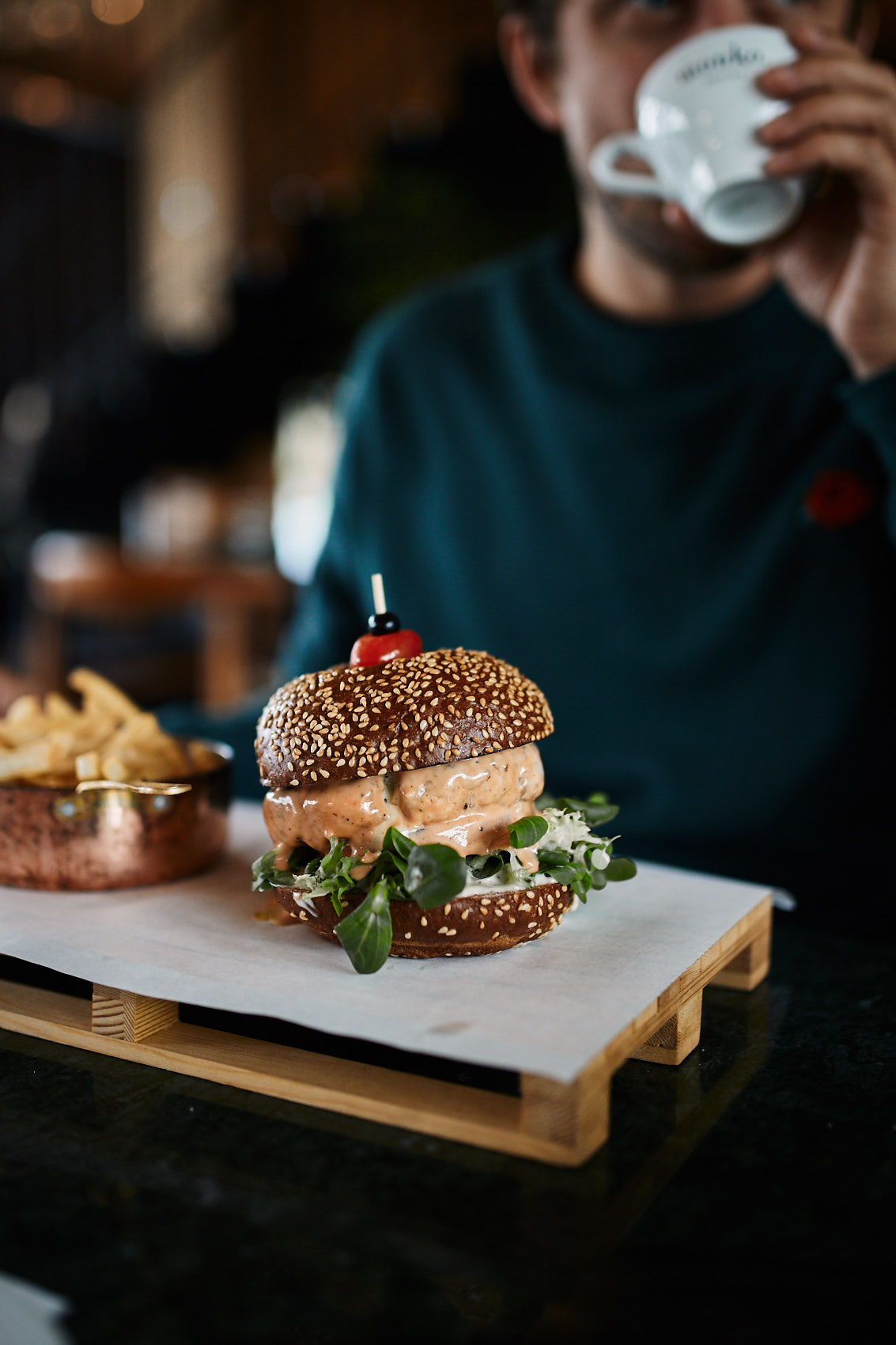 Mam nadzieję, że jesteście głodni. Nasz kolejny adres to Stawy Podgórzyńskie, które rozlewają się w Kotlinie Jeleniogórskiej, założone prawdopodobnie w XV wieku przez zakon Cystersów z Cieplic. To tu znajduje się restauracja Aquakultura, którą polecają chyba wszyscy miłośnicy dobrego jedzenia z okolic. Budynek robi wrażenie: nowoczesna stodoła, drewniana elewacja i widok na stawy w otoczeniu wzgórz. Zamówiliśmy czarnego fishburgera i czarne pierogi z jesiotrem (specjalnością Aquakultury są właśnie ryby) – rewelacja! Polecamy też zupę rybną, uwaga – porcje są wielkie! – zapewnia Kinga.