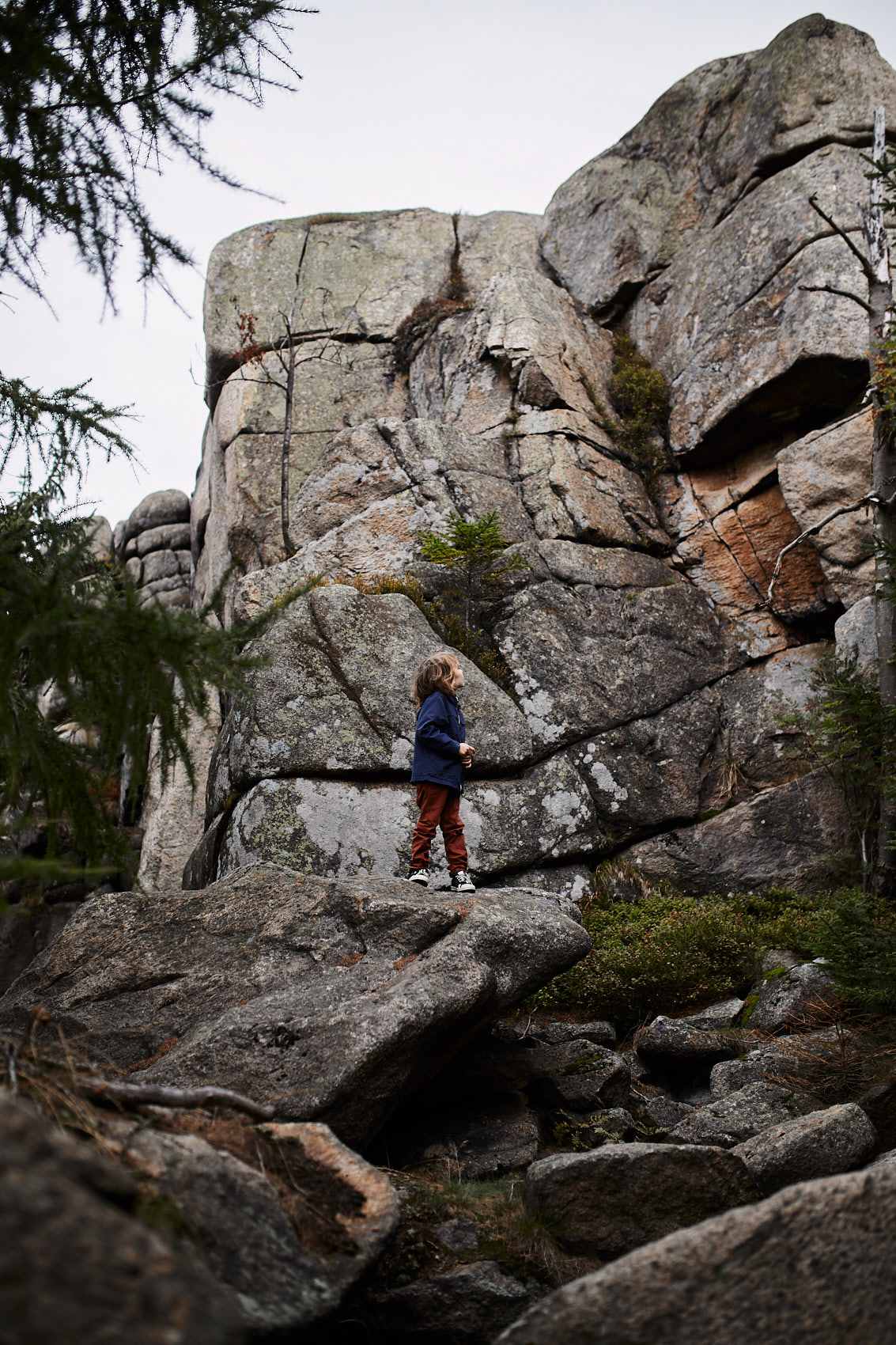 Drugi cel był trochę off roadowy, skałki pod Babińcem. Nie prowadzi na nie żaden oficjalny szlak, ale znaleźliśmy informacje, że łatwo można na nie dojść od nieczynnej już stacji narciarskiej, która znajdują się pomiędzy Szklarską Porębą a Jakuszycami. Dzieci jednak straciły szybko siły, szczerze zwątpiłam, że będzie nam dane je zobaczyć. To typowe skałki dla tych terenów, więc byłaby szkoda. Jagody, których było w bród, nie pomogły, dopiero jak znalazłam prawdziwka, dzieci dostały mocy, by znaleźć kolejne. I tak juz pełni entuzjazmu dotarliśmy na szczyt. Oj, było warto – zapewnia Kinga.
