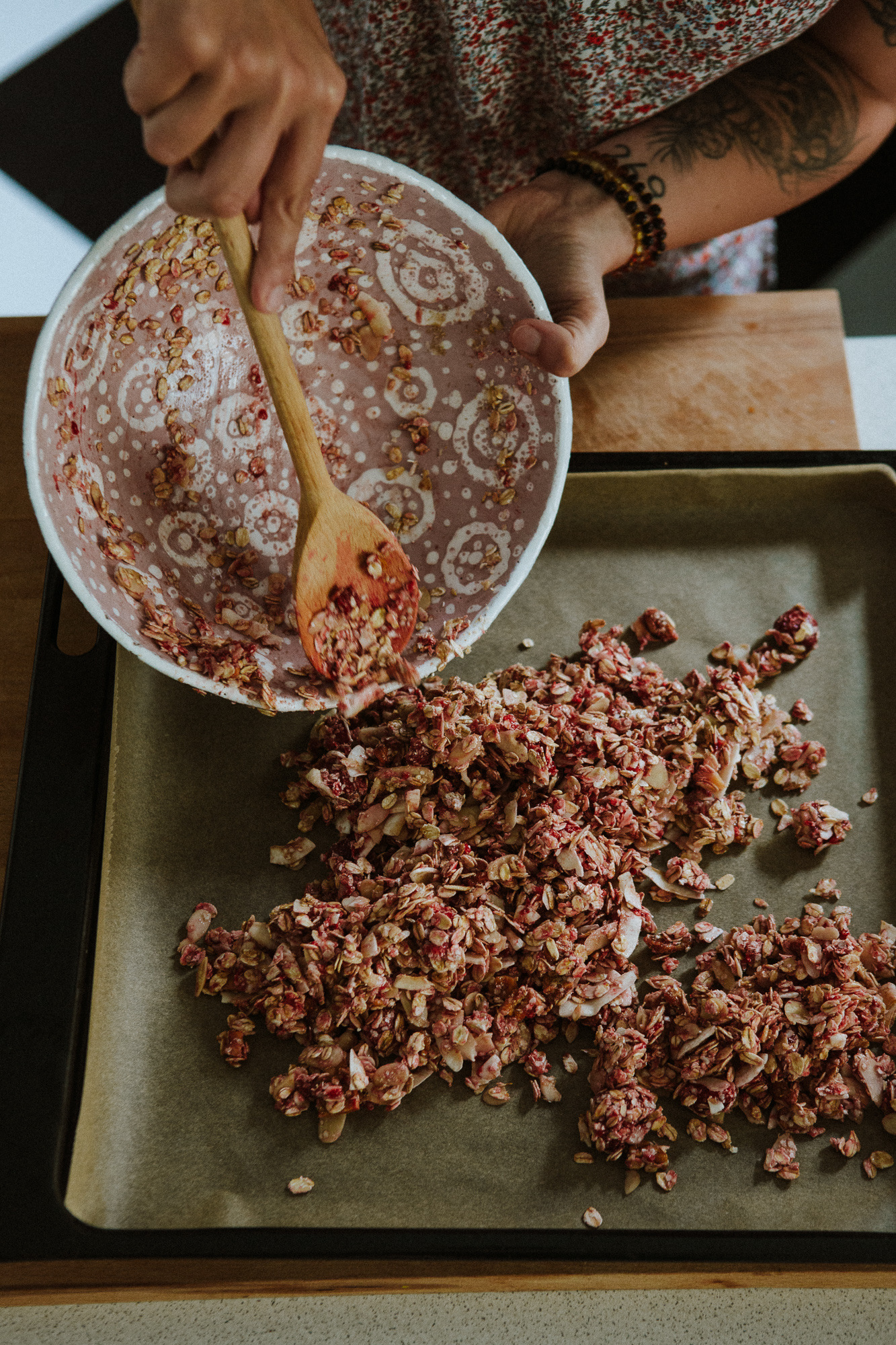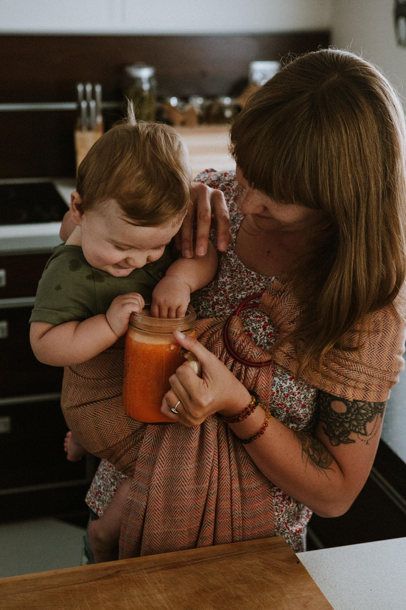 Książkę pisało mi się trochę ekstremalnie, bo zaczęłam, gdy Kazik miał 3 miesiące, więc był niemowlakiem, który potrzebował mnie 24 godziny na dobę, z czego mniej więcej 20 godzin był przy piersi. Dużo więc pisałam na komórce, w notatniku – tam spisywałam pierwsze szkice, pomysły, wszystko to, co wydawało mi się ważne. Potem, gdy Kazik był starszy, bo książkę pisałam około dziewięciu miesięcy, też było specyficznie, bo pisałam głównie po nocy, kiedy on spał – siedziałam obok na łóżku (śpimy razem od początku) i pisałam, i karmiłam. Kiedy na to patrzę z perspektywy czasu, to jestem pełna podziwu dla samej siebie, jak mi się to udało. Szczególnie czas przygotowywania przepisów był bardzo wymagający, ale też daliśmy radę, bo Kazik miał już rozszerzana dietę i jedliśmy to samo od początku, więc spróbował niemal wszystkiego, co proponuję w książce.