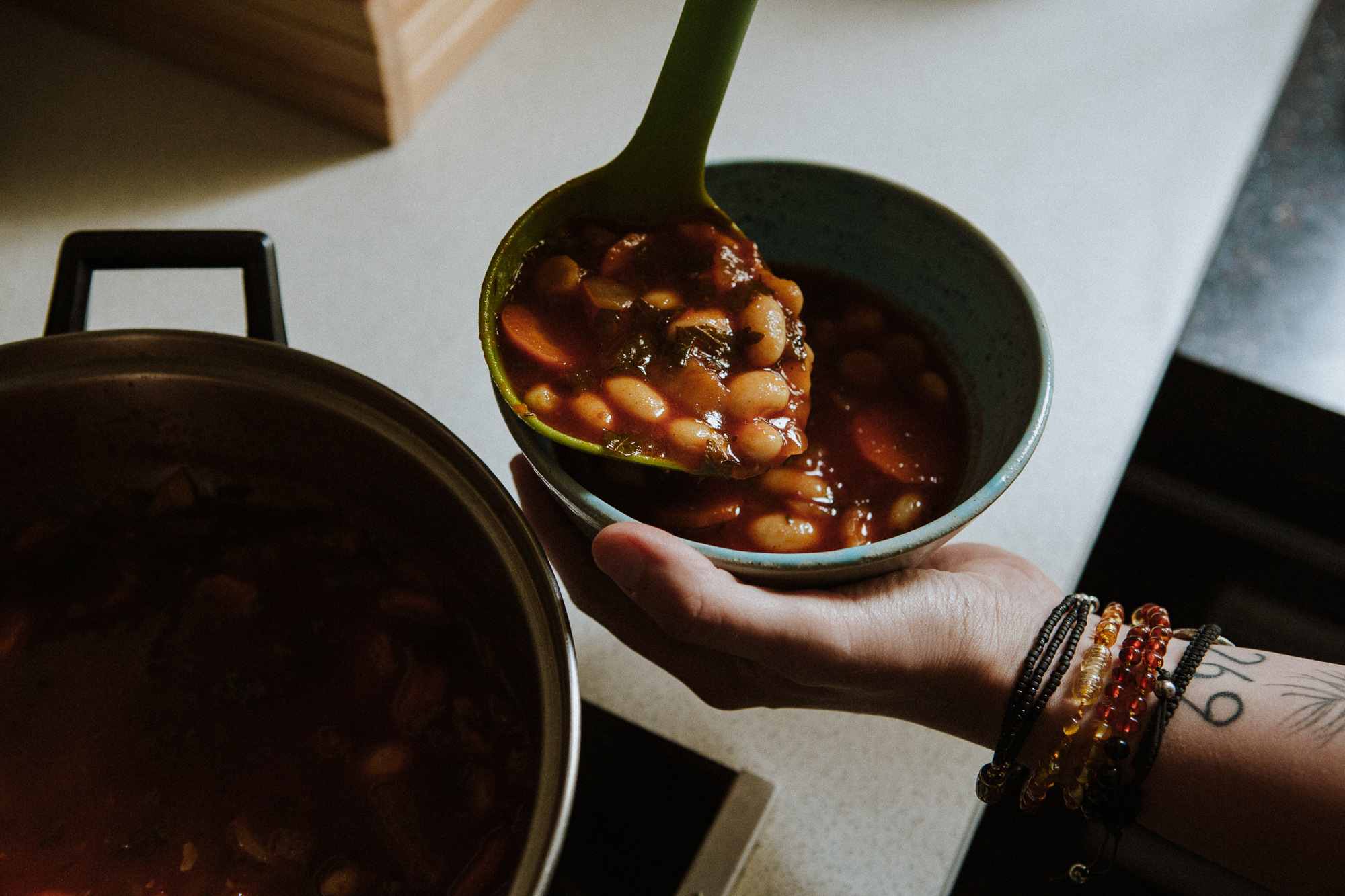 Trochę wstyd przyznać, bo właśnie sama wydałam książkę z przepisami, ale rzadko korzystam z gotowych przepisów. Raczej jestem z tych, które patrzą na to, co mają na półce, w lodówce, w koszyku z warzywami, i coś zawsze mi z tego wyjdzie. To, co wyjdzie lepiej, spisuję i publikuję na blogu. Skądś jednak musiałam się tego nauczyć – co z czym łączyć, jakie smaki fajnie ze sobą grają, jakie przyprawy nadają smak potrawom. Jako że już naprawdę od wielu lat gotuję wegetariańsko i wegańsko, korzystałam oczywiście z inspiracji z Jadłonomii, ale też z blogów zagranicznych, bardziej na zasadzie: „mam ciecierzycę, kakao i daktyle, co z tego można wyczarować?”. Teraz polska blogosfera kulinarna jest szalenie bogata, a wegańskich przepisów jest mnóstwo – jest w czym wybierać. Lubię zaglądać do Wegan Nerd, erVegana, Aśki Rzeźnik.