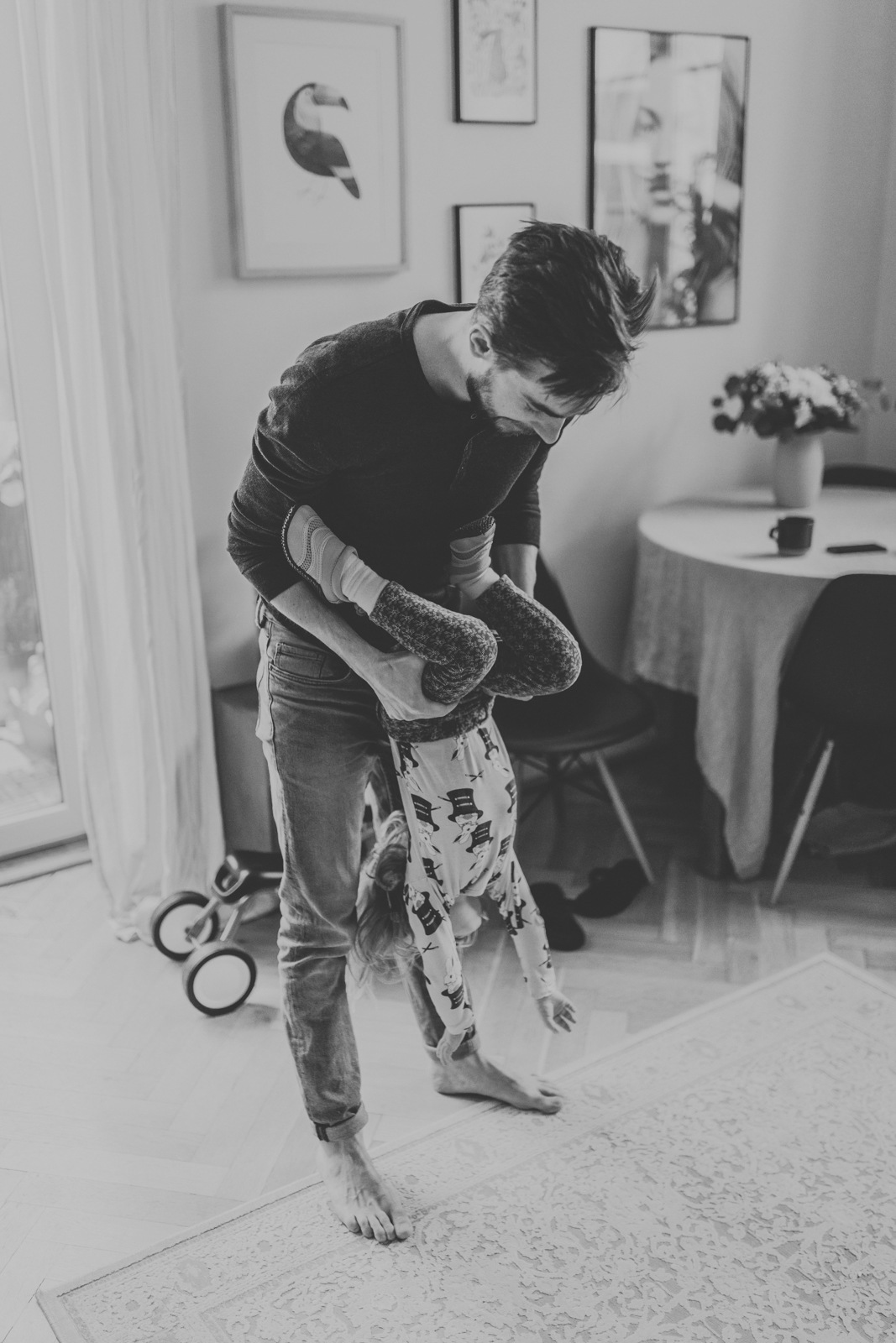 W ramach nowego cyklu spotykam się z kolejnym tatą, by poznać jego opowieść o byciu ojcem. Instagramowy nick Pan Inżynier zwodzi nas na błędne tory – myślicie stereotypowo, że informatyk, że programista, że małomówny czy zamknięty w sobie? Otóż Wojtek, manewrując aeropressem jedną ręką, a drugą podnosząc Melanię (na zmianę ze Stefcią), opowiada mi historie – jedna za drugą, właściwie przerywając sobie tylko na łyk kawy. Ogarnia kuchnię, trzymając małą w nosidle i opowiada o życiu w Poznaniu, przyjaźni z właścicielami knajpy Raj, o zajawce rowerami i o kobietach. Bo jak by nie patrzeć, cudowny to babiniec…