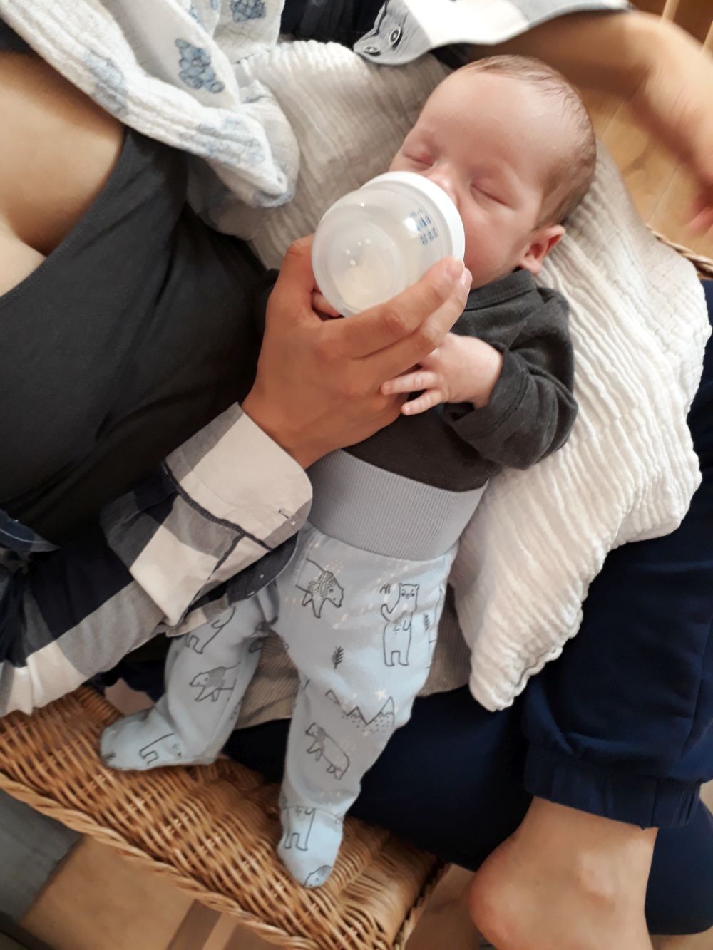 Strasznie. Teraz, z perspektywy czasu, to wszystko wydaje mi się śmieszne. Oczywiście, powyższa historia jest dużym skrótem tego, przez co przeszliśmy. Wiem, że wiele osób mogłoby napisać: O, podała butelkę i dlatego skończyła się laktacja. Ale my dokarmialiśmy syna kubeczkiem, póki był system mieszany. Liczyliśmy kupki, siusiu, zapisywaliśmy wszystko w zeszycie. Oczywiście popełniliśmy wiele błędów. Ale też wiele osób – w tym doradczyni laktacyjna i personel w szpitalu – tylko nas stresowało, a nie pomagało. Zakładano, że nawet mililitr mleka modyfikowanego jest niedobry dla mojego synka. A teraz wiem, że podane wcześniej mm pozwoliłoby nam pewnie nadal – do tej pory – karmić się piersią. Czułam się oszukana i zmęczona. Zniechęcona. Nikt nie pomagał nam w karmieniu mlekiem modyfikowanym. Nikt nie powiedział nam, jak je podawać – ile razy dziennie, jak często, jakie porcje. Brakuje informacji na ten temat, np. w jakiej pozycji karmić bezpiecznie. W odpowiedzi na pytanie skierowane do doradczyni laktacyjnej o wielkość porcji, kiedy trafiłam do szpitala, usłyszałam, że informacja jest na opakowaniu.