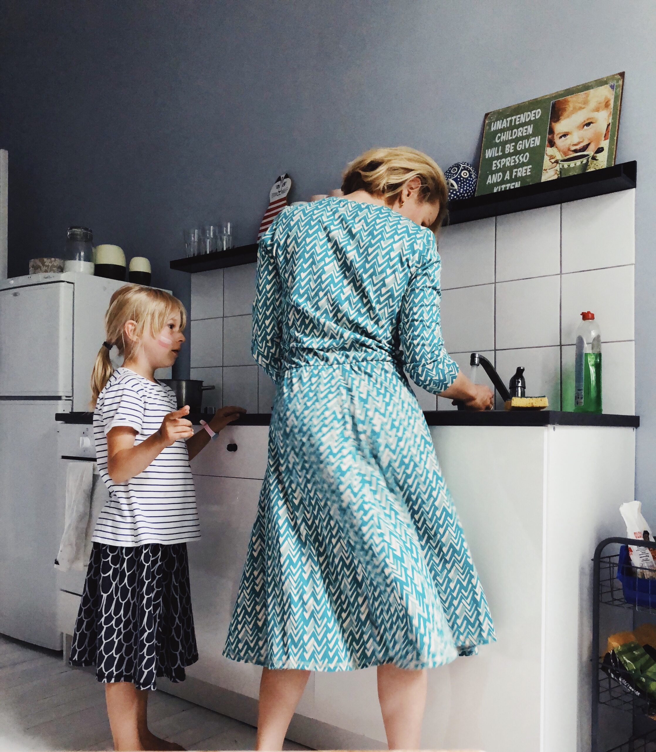 Sukienka w jodełkę będzie hitem jesienno-zimowej kolekcji, ja wam to mówię. Bardzo doceniam to, że Agata Piechocka, założycielka marki Miszkomaszko oraz mama Olafa i Łucji, zaprasza na sesje swoje ziomalki i wspólnie robią to, co chcą. Ta radość ze spotkania aż bije z kadrów i inspiruje do tego, by prędko,jak najprędzej, zorganizować dziewczyńską fiestę. Wdziać roztańczone sukienki i wspólnie połobuzować. To chyba największa zaleta jej sukienek – czujesz się w nich kobieco i lekko, nawet robiąc codzienne, przyziemne rzeczy. Jedną z takich sukienek można wygrać w konkursie – komu się uda?