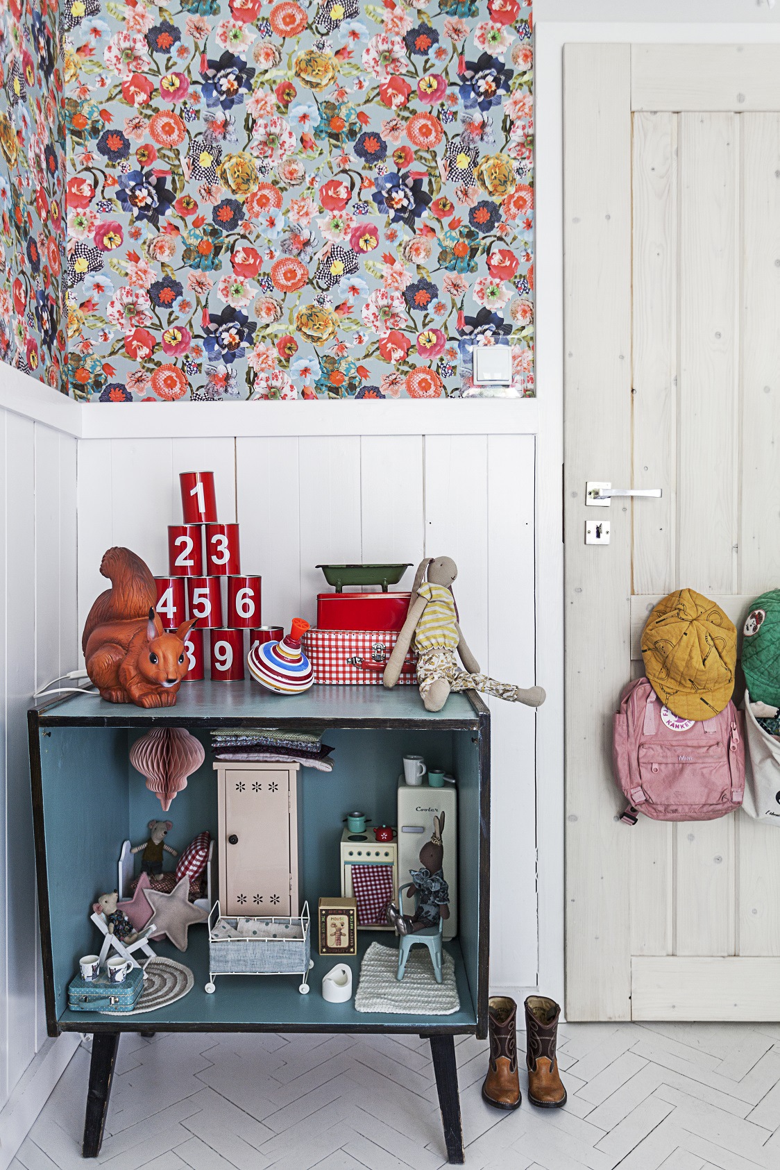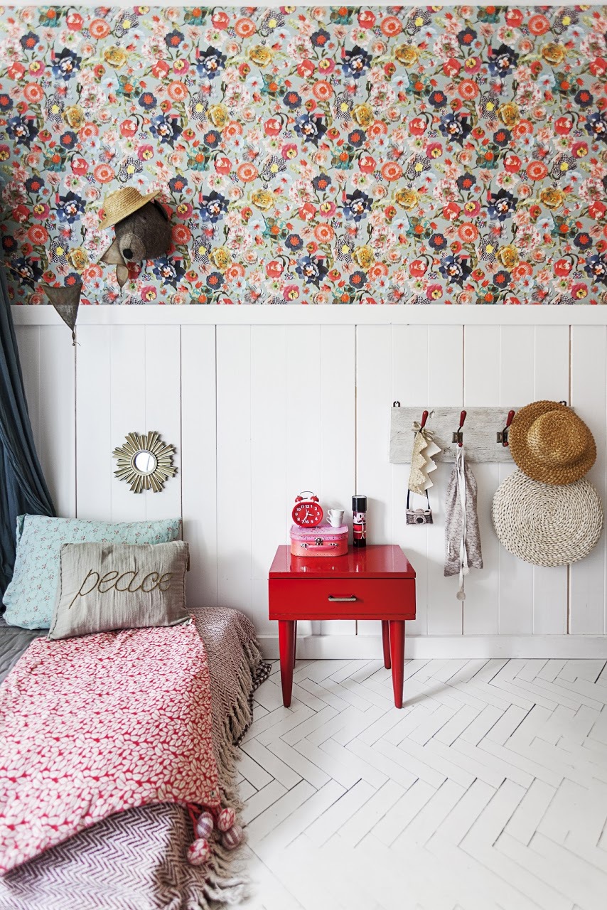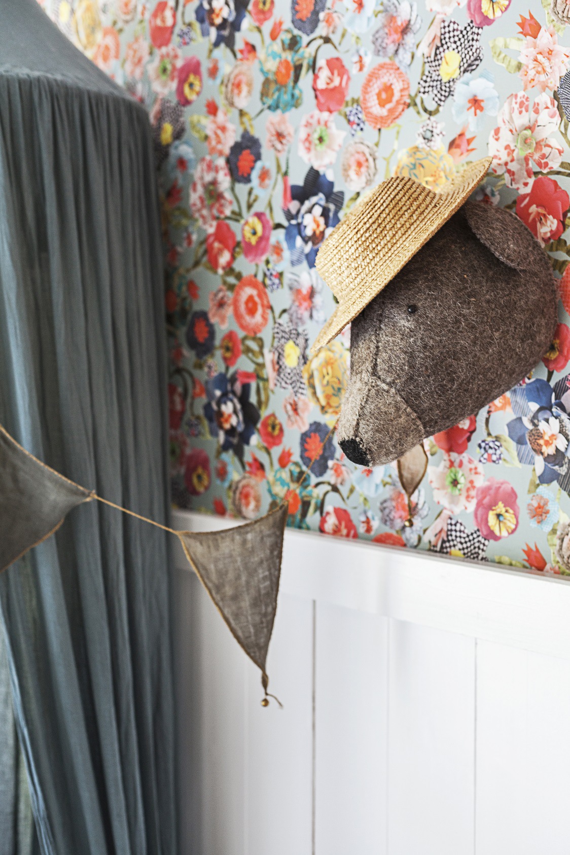 Uprzedzając wasze pytania, nadmieniamy, że kwiatowa tapeta pochodzi ze sklepu Oilily.com, głowa misia jest marki Kids Depot, a słomkowe kapelusze czujne oko Julii namierzyło w antykwariacie. Więcej inspiracji znajdziecie w naszej selekcji.