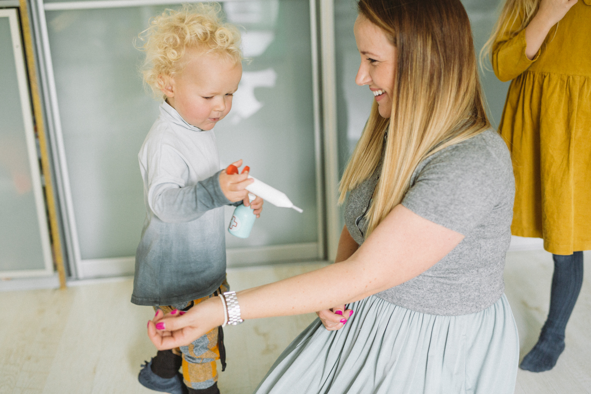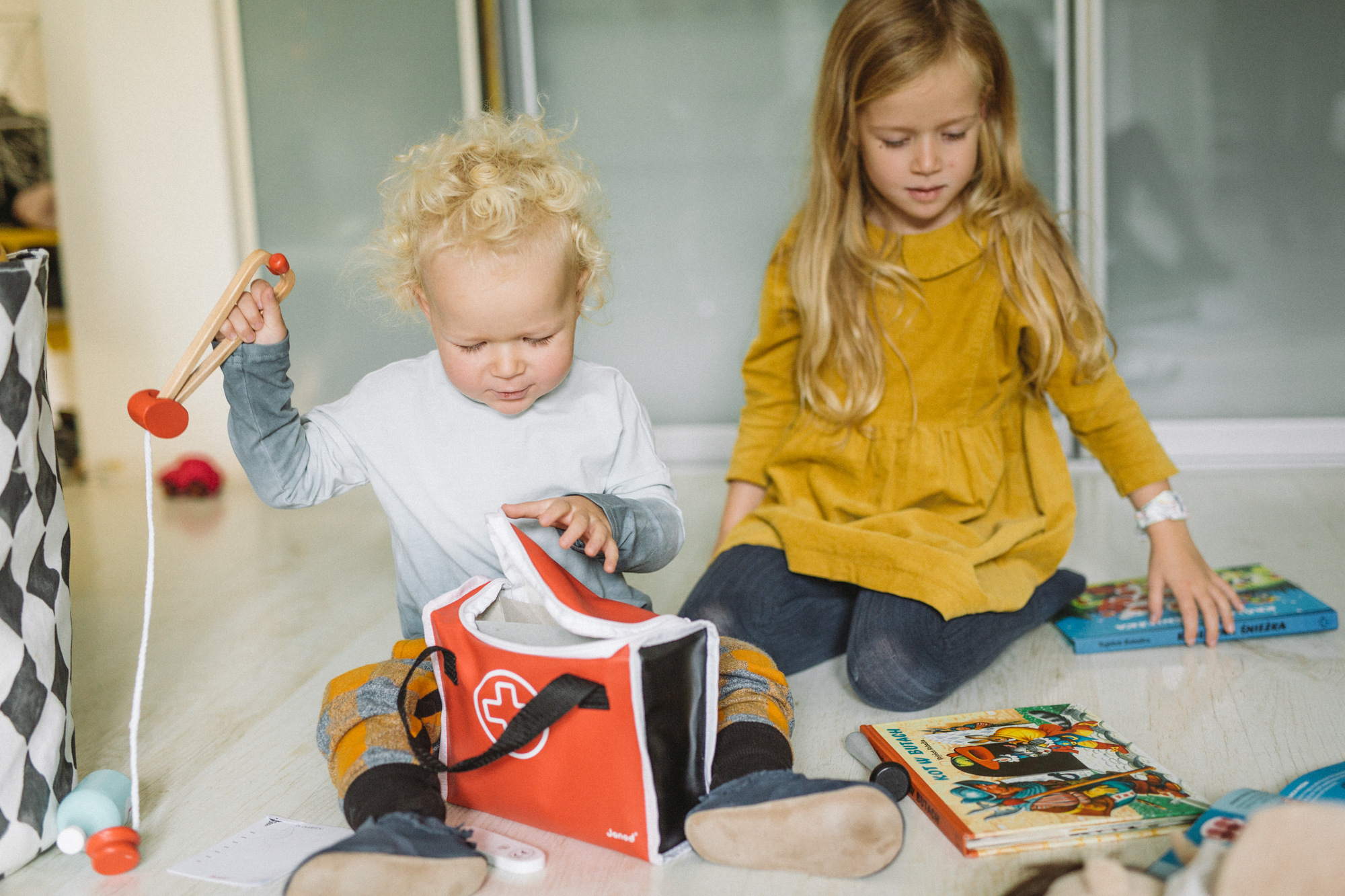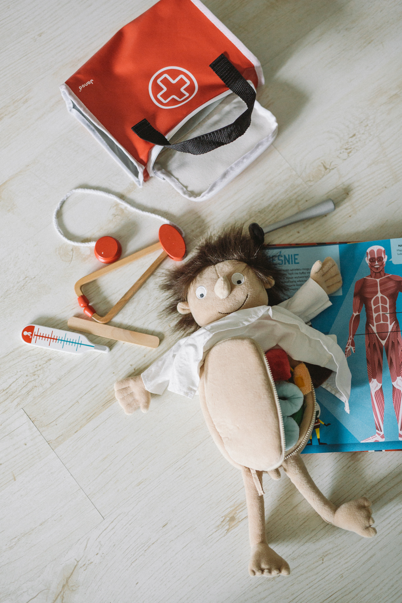 Ania opowiada o nowych książkach, jakie właśnie czytają, a dzieciaki w szale zabawy wzięły w obroty ciężarówkę Janod i zestaw kreatywny Mudpuppy. W ruch idą układanki magnetyczne Magnetibook i nowe kauczukowe kręgle Rubbabu. Pilnej interwencji domaga się pacjent Erwin, który chętnie pokaże małym lekarzom, co kryje się w środku – uczymy się, gdzie bije serce! Diagnozy, recepty, stetoskopy Janod… Dzieci są zajęte sobą, można pogadać!
