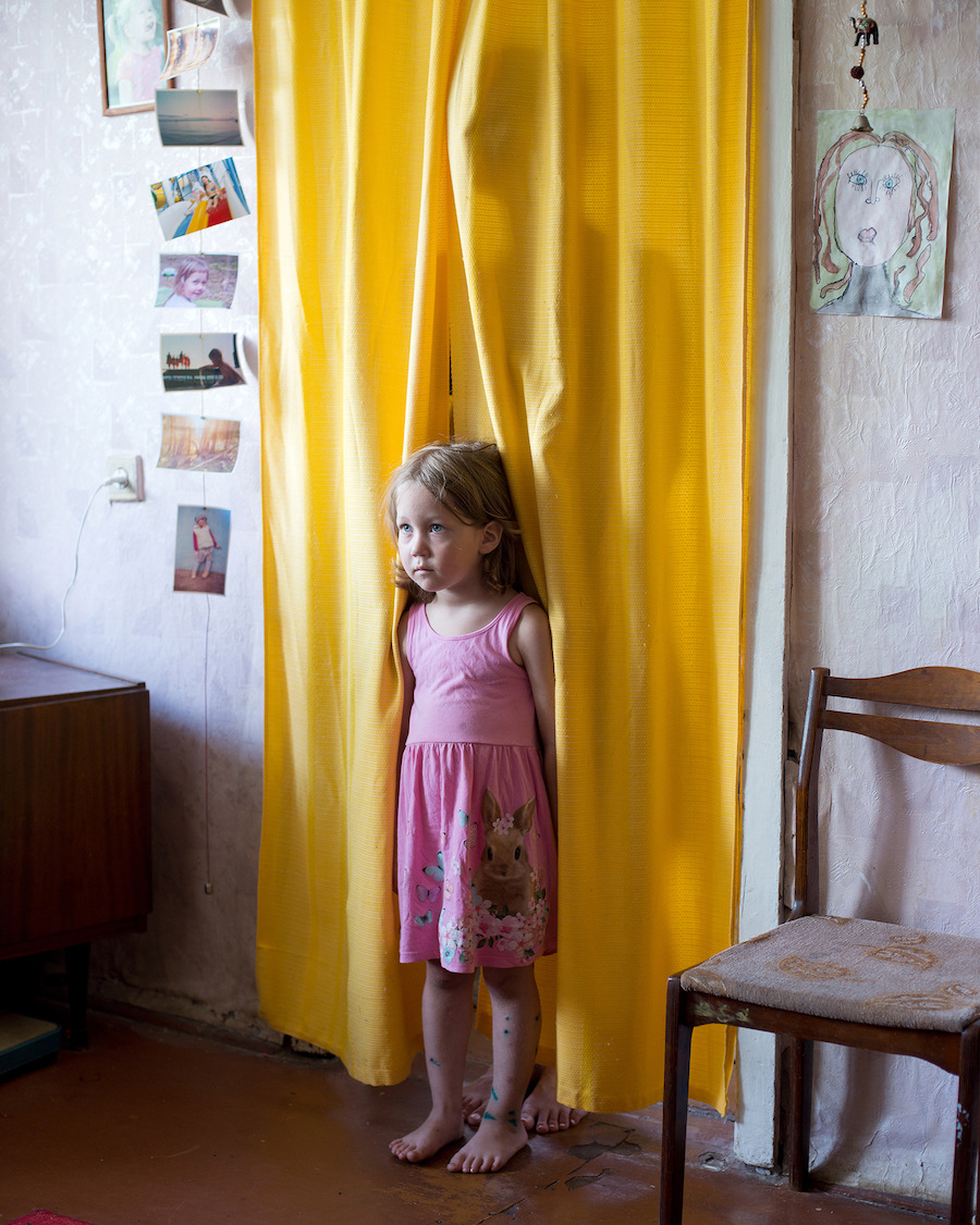 Fotografie z serii „Hidden Motherhood” niepokojąco przykuwają wzrok, bo z pozoru banalne sceny z domowego życia uwydatniają postać matki, paradoksalnie chowając ją w scenografii. O ich bohaterkach i o zamyśle na matczyny cykl opowiada nam autorka projektu, rosyjska artystka Alena Zhandarova, która o wielu odcieniach macierzyństwa wie z własnego doświadczenia. Ten projekt okazał się dla niej terapią.