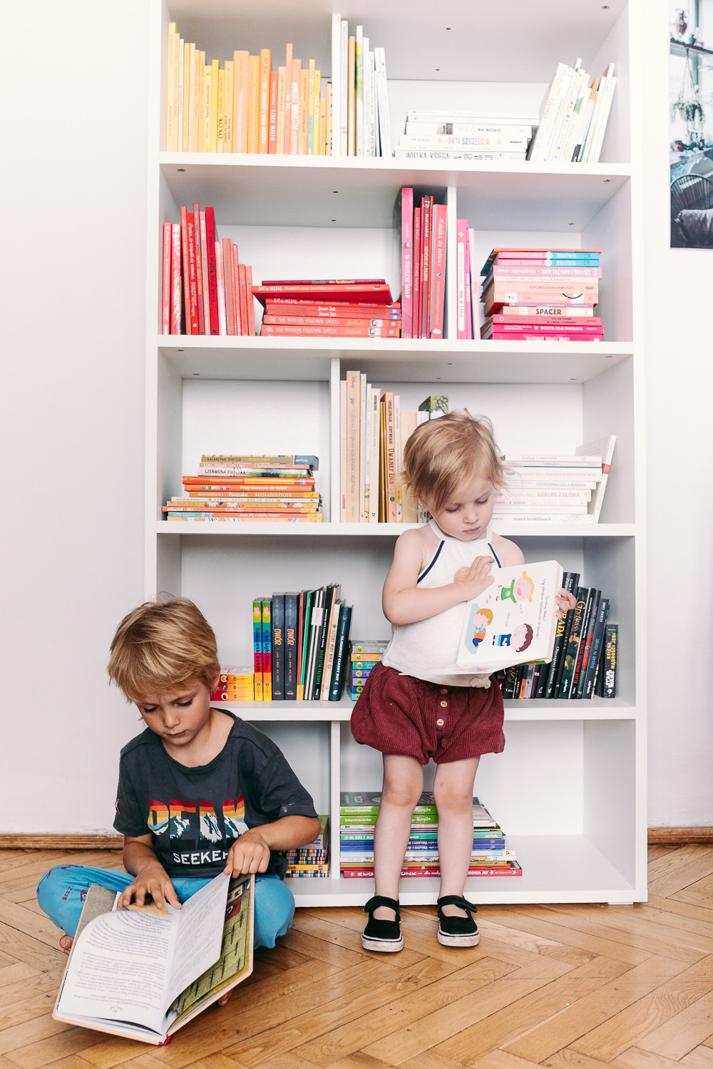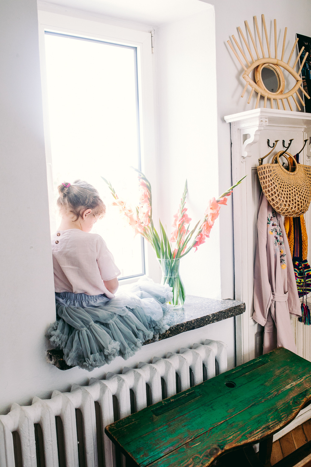 Dzieci ubrane są w polskie marki: spódniczkę tiulowa Tu szyte, sukienkę Busy Bee, spodnie i longsleeve Sweet home, kwieciste spódniczki Kiry i Marianki Bohemian Youngster, spodnie z kolcami Leo Bexa, sukienka Kiry Aqademia,