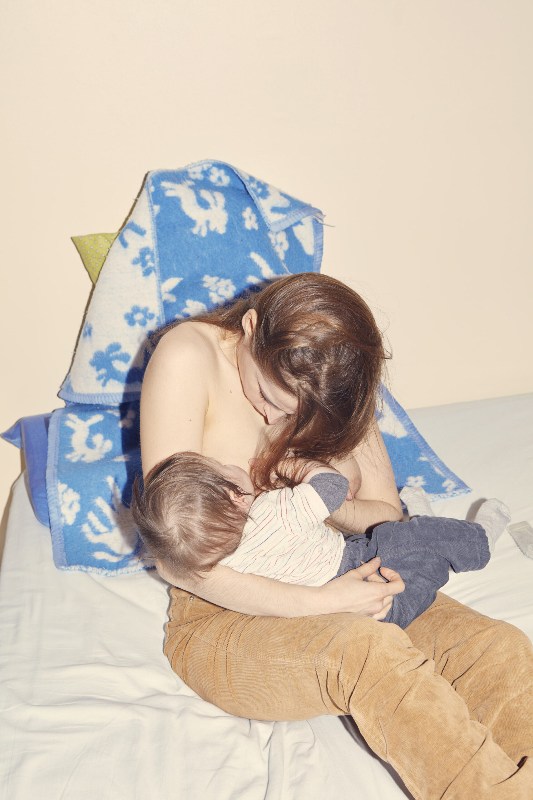 Ten kolorowy przerywnik stanowi dość surową dokumentację karmienia piersią. Dokumentował ojciec chłopca, francuski fotograf Vincent Ferrane, a bohaterką ujęć jest jego wielkiej urody żona. Kadry są chłodne i zdystansowane, choć fotograf podchodzi blisko i pozwala sobie na uwiecznianie mlecznej fontanny z nabrzmiałej piersi czy cieknącego ciurkiem mleka. Dużo w tych zdjęciach zmęczenia, nudy, przyziemnych obowiązków, prędkiego uciekania spod prysznica na dźwięk płaczącego dziecka. Jest nawet takie bardzo bliskie mi ujęcie przeziębionej mamy, karmiącej w maseczce – też tak robiłam. Zdjęcia te zebrał Ferrane i wydał w zeszłym roku w formie książki „Milky Way”. Choć sporo tu odniesień do mitologii i legend, mnie najbardziej dotyka codzienny wymiar tych zdjęć, zwykłość, powtarzalność i nieuchronny porządek rzeczy. Brawo za to.