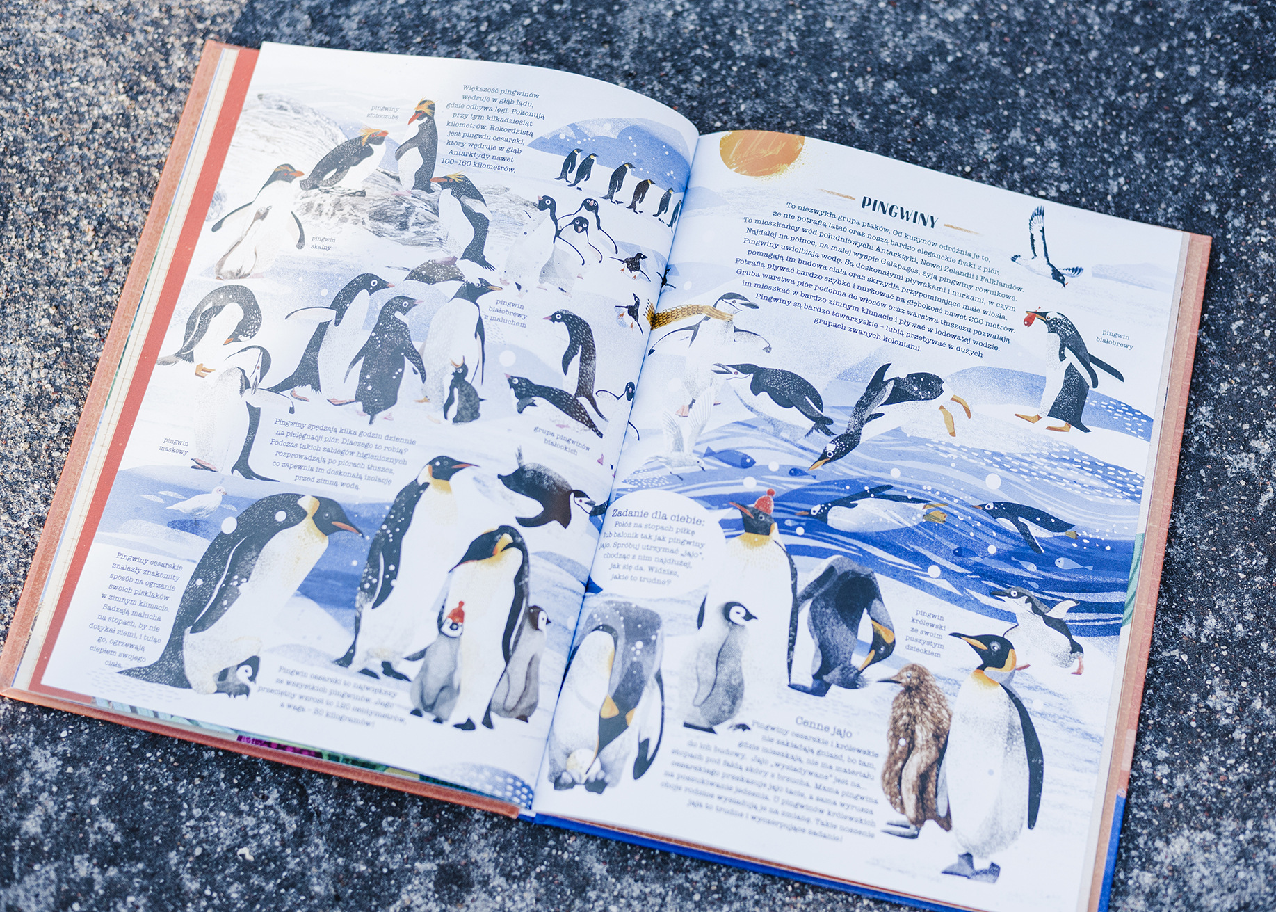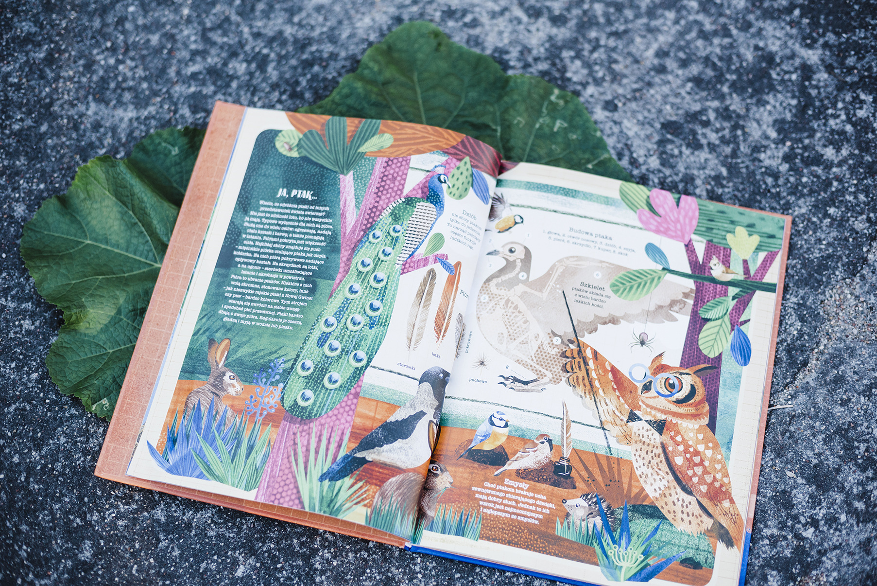 Wiecie, na czym pingwin wysiaduje jajo? Jaką sowę można spotkać w mieście? Czym najlepiej dokarmiać małych przyjaciół? Jak wygląda gniazdo jaskółki i czy remiz to ptak, czy nieptak? Ha! My wiemy już wszystko. Prócz wiedzy autorka proponuje również zagadki i zabawy, co nie tylko pomaga utrwalić pozyskane właśnie treści, ale sprawia, że książka ląduje już w bagażu podręcznym. Przy okazji dodam – bo to nie bez znaczenia przy ilości rzeczy do spakowania – że ten tytuł nie jest już tekturowym wydaniem. Piękne, duże ilustracje zostały zamknięte jedynie w twardej oprawie. Dobrej lektury!