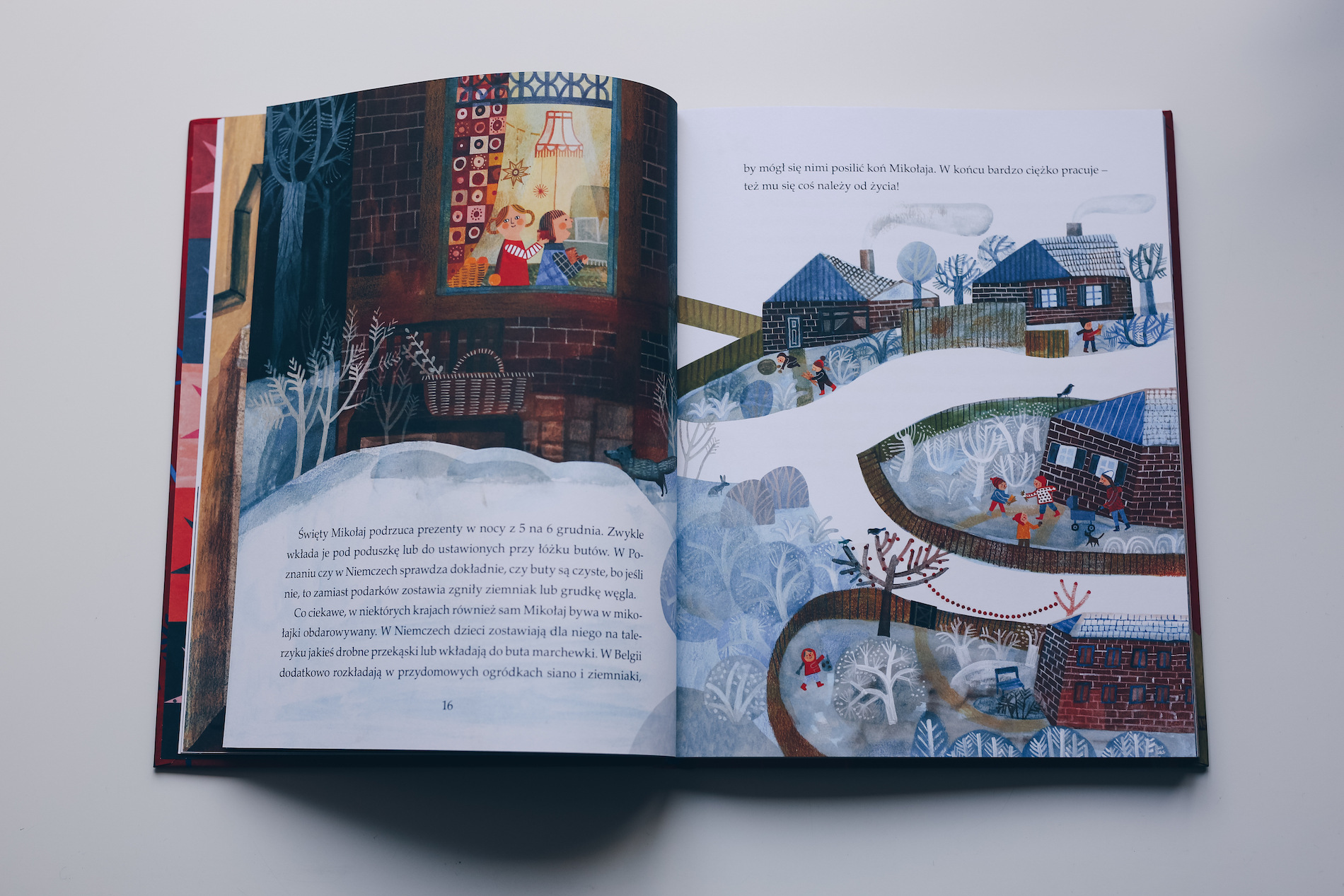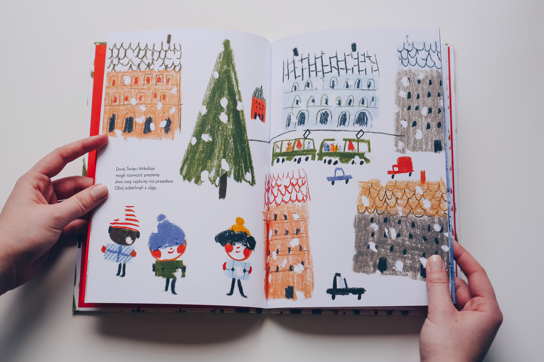 Po książki sięga zapewne tak samo często jak po szkicownik i ołówek. Czytanie i rysowanie współbrzmią i wypełniają świat tej bardzo młodej artystki – patrząc na jej dorobek, nie waham się użyć tego słowa. Ale Maja tylko raz do roku sięga po te książki – grudniowe, wypełnione magią, oczekiwaniem, czasem tęsknotą. Śladami stóp na śniegu, dzwonkami sań i nosami dzieciaków przylepionymi do zaparowanych szyb. W sam raz na dzisiejsze mikołajki!