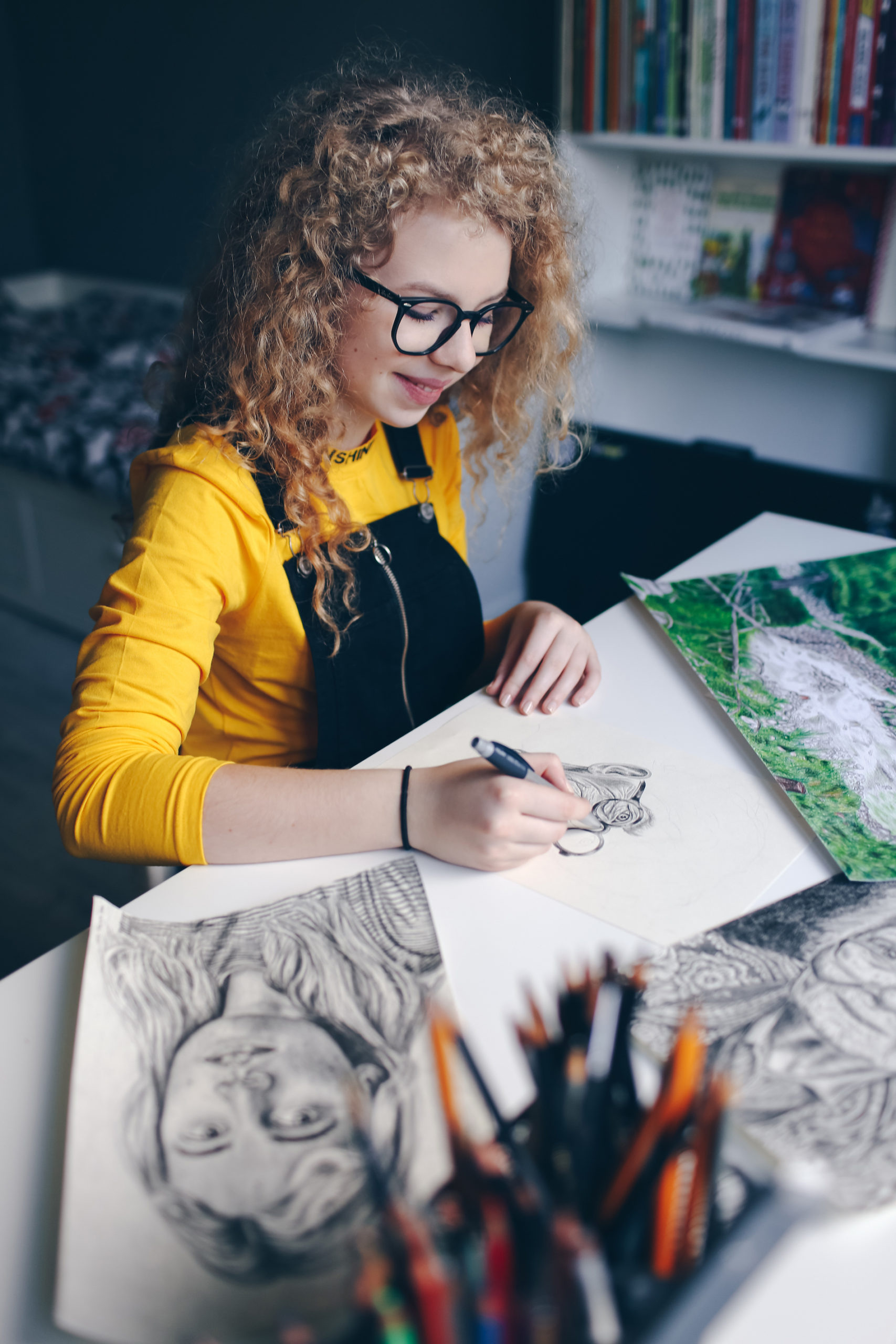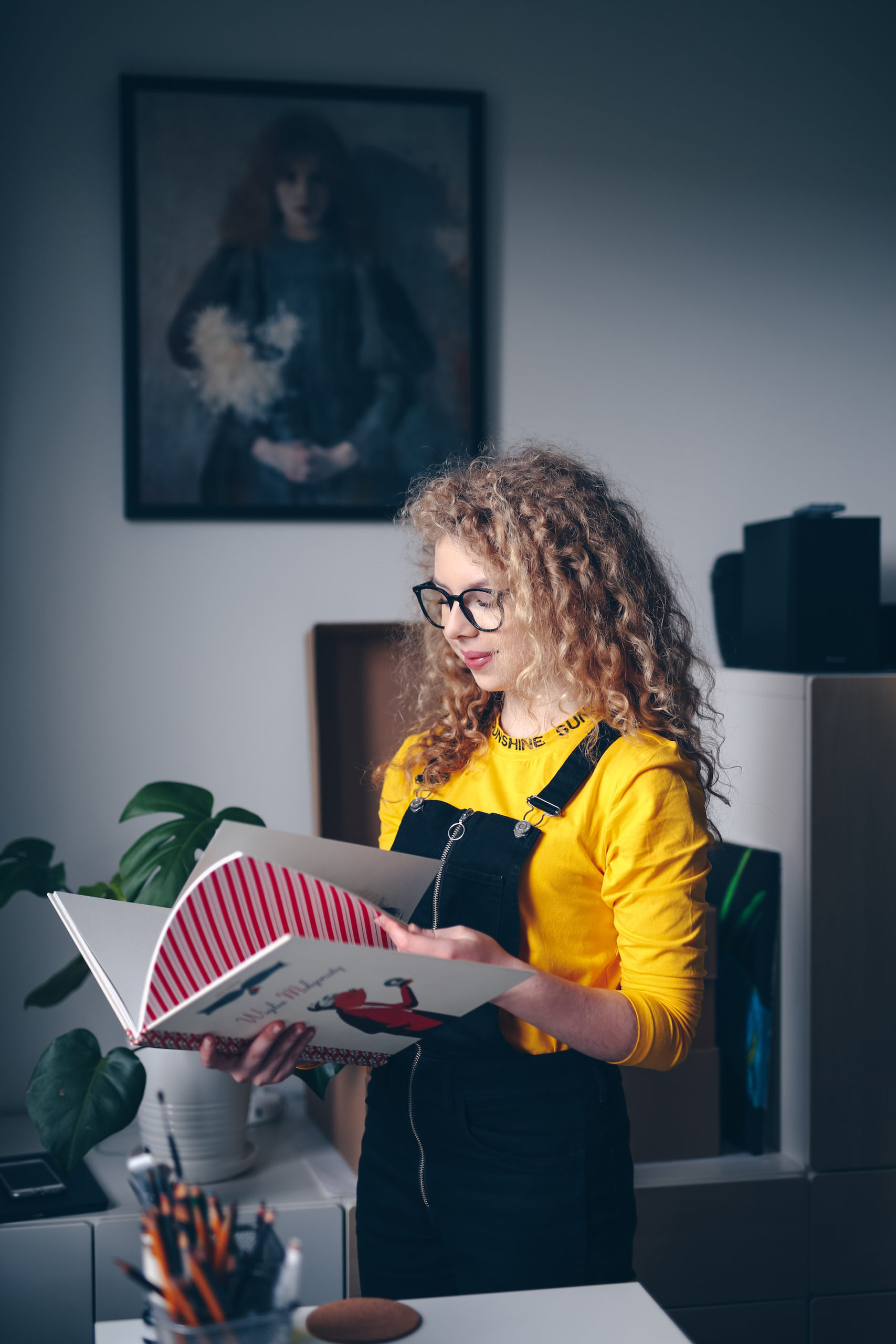 Gdy okazało się, że Ania – fotografka, która zrobiła zdjęcia do tej sesji – urodziła się w tej samej miejscowości i mieszkała na tej samej ulicy co Maja, wiedziałam, że dzieje się tu jakaś grudniowa magia. Fakt, w tym miesiącu nawet najbardziej zatwardziałe racjonalne głowy otwierają się na odrobinę czarów. Bo kto nie lubi znaleźć prezentu pod choinką? Dajemy się więc całkowicie ponieść atmosferze gwiazdkowej i rozpoczynamy odliczanie przy lekturze. A swoje top pięć książek w tematyce świątecznej poleci nam Maja, która zdążyła przeczytać je wszystkie, zanim ja skończyłam pierwszy rozdział. Zaglądam więc z ciekawością do jej biblioteczki i do szkicownika. Maja, zamieniam się w słuch.