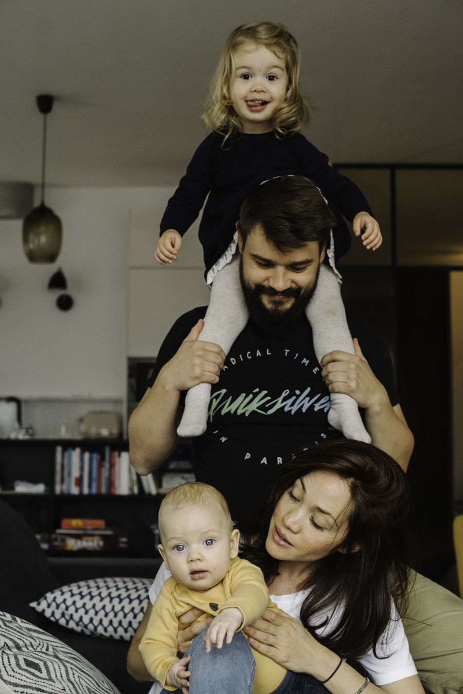 Asię Strzałkowską znalazłam przez ogłoszenie w jednej z grup na Fb. Napisałam, że szukam rodzin, które chciałyby się podzielić swoimi domowymi zwyczajami. Napisała, że razem z mężem Antkiem i dziećmi, w tym roku pierwszy raz z dwójką, dwuipółletnią Felą i pięciomiesięcznym Frankiem, dzień przed Wigilią, organizują sobie taką kameralną domową uroczystość. Bardzo mnie to poruszyło.