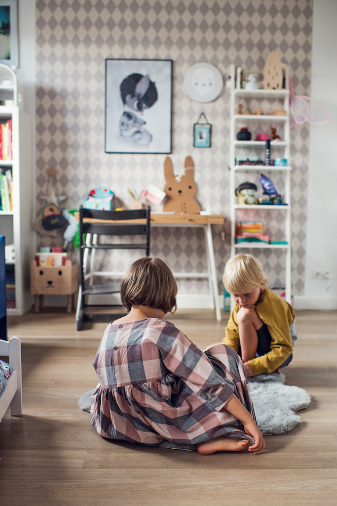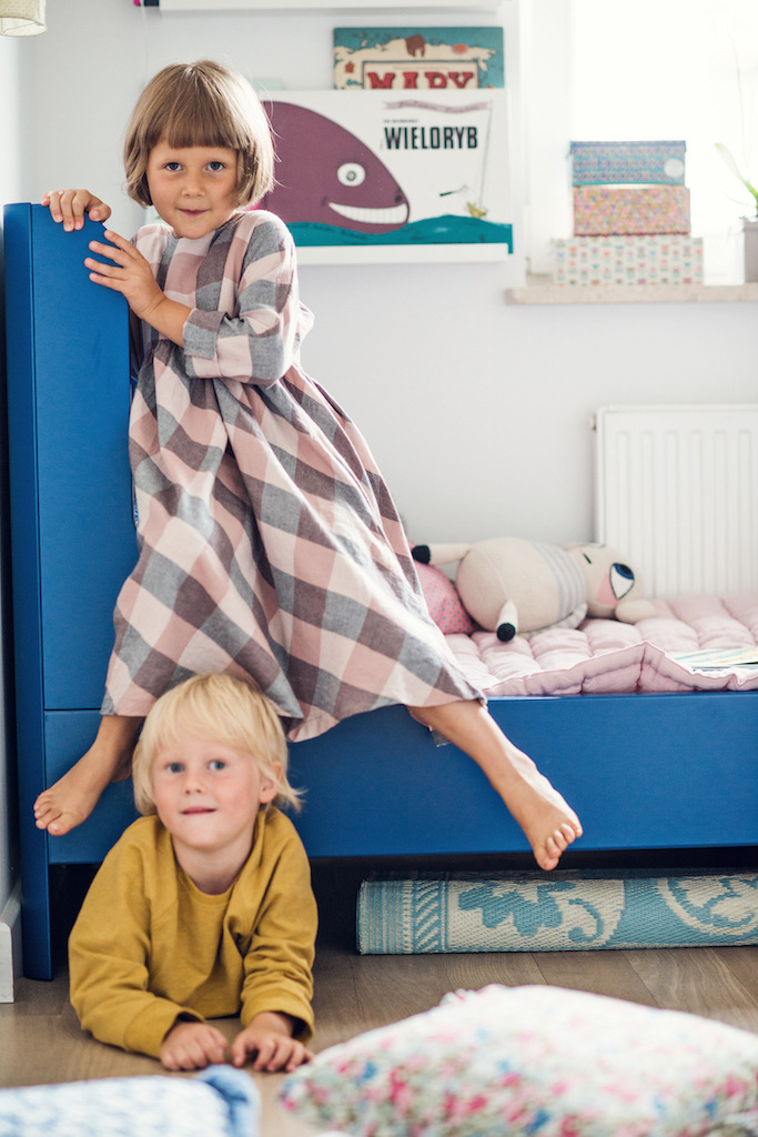 Pokój został sprytnie podzielony, tak by tworzyć dwie strefy płynnie przechodzące w część wspólną. Jesteście ciekawi jak to wygląda? Zapraszamy, i nasze ciekawskie kroki kierujemy od razu do pokoi Natalii i Jasia razem z fotografką Pauliną Kanią.