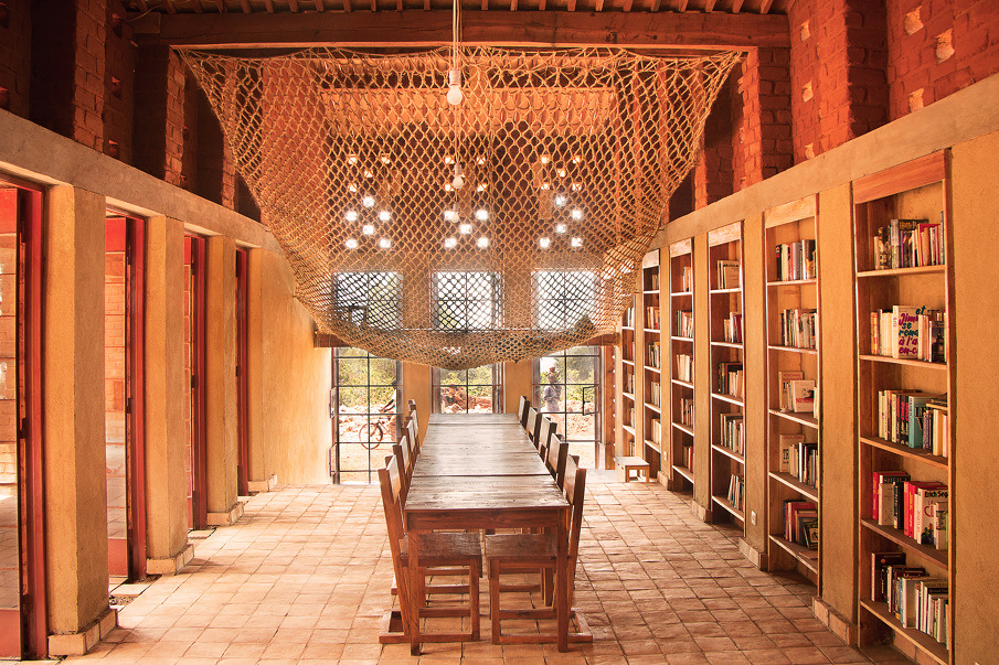 Z Azji skaczemy do Afryki. Zmiana klimatu, zmiana otoczenia, architektury, zwyczajów i potrzeb, wszystko to widać gołym okiem, ale w każdym zakątku świata, dzieci kochają książki. Biblioteka w Muyinga jest pierwszą w regionie. Monochromatyczne wnętrze wycisza i zaprasza do lektury. Wygodne siedziska i rozpostarta linowa siatka, niczym wielki hamak, pozwalają na przyjemny wypoczynek z ulubionymi tytułami. Trochę sennie? A może to tylko obietnica dalekiej podróży do świata fantazji.
