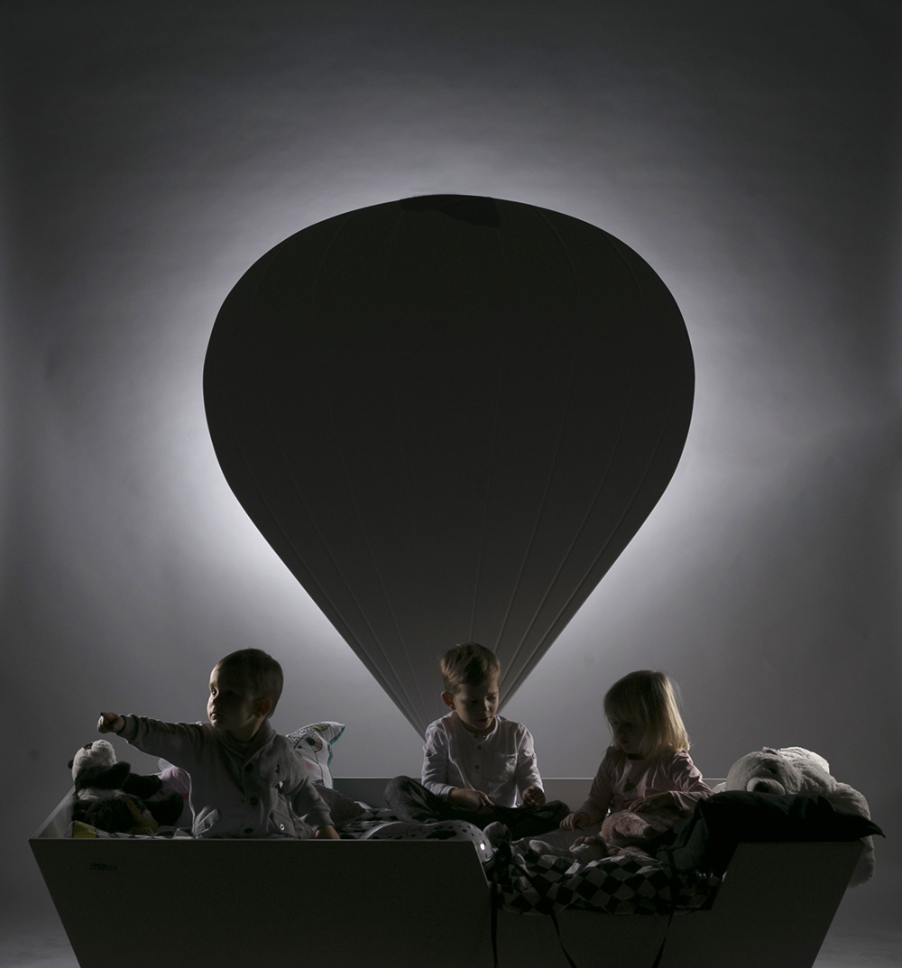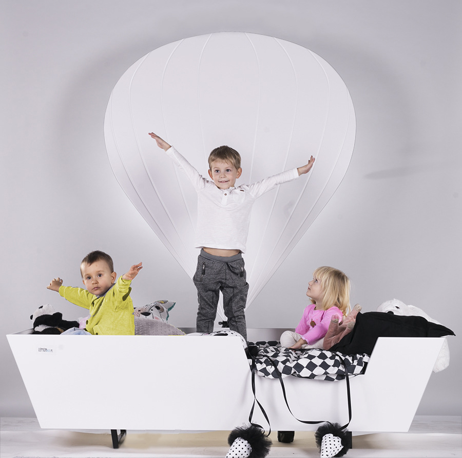 Design tego łóżka, zapewni podróż w krainę pięknych snów. Mebel, dzięki cofniętym nóżkom, wygląda jakby unosił się nad ziemią. Doczepiony się nad nim balon, wzmaga ten efekt i z pewnością spodoba się dziecku. Nie straszne w nim pierwsze noce, gdyż balon, jest nie tylko ozdobą, ale również lampą. Bojące się ciemności dziecko, może samo zdecydować o natężeniu światła i zasypiać spokojnie. Nieco podwyższona rama, ochroni małego wiercipiętę przed wypadnięciem. W ciągu dnia, latające łóżko, inspiruje do radosnych zabaw. Dostępne w kilku wariantach kolorystycznych, z pewnością wpisze się w wasze dziecięce wnętrze.