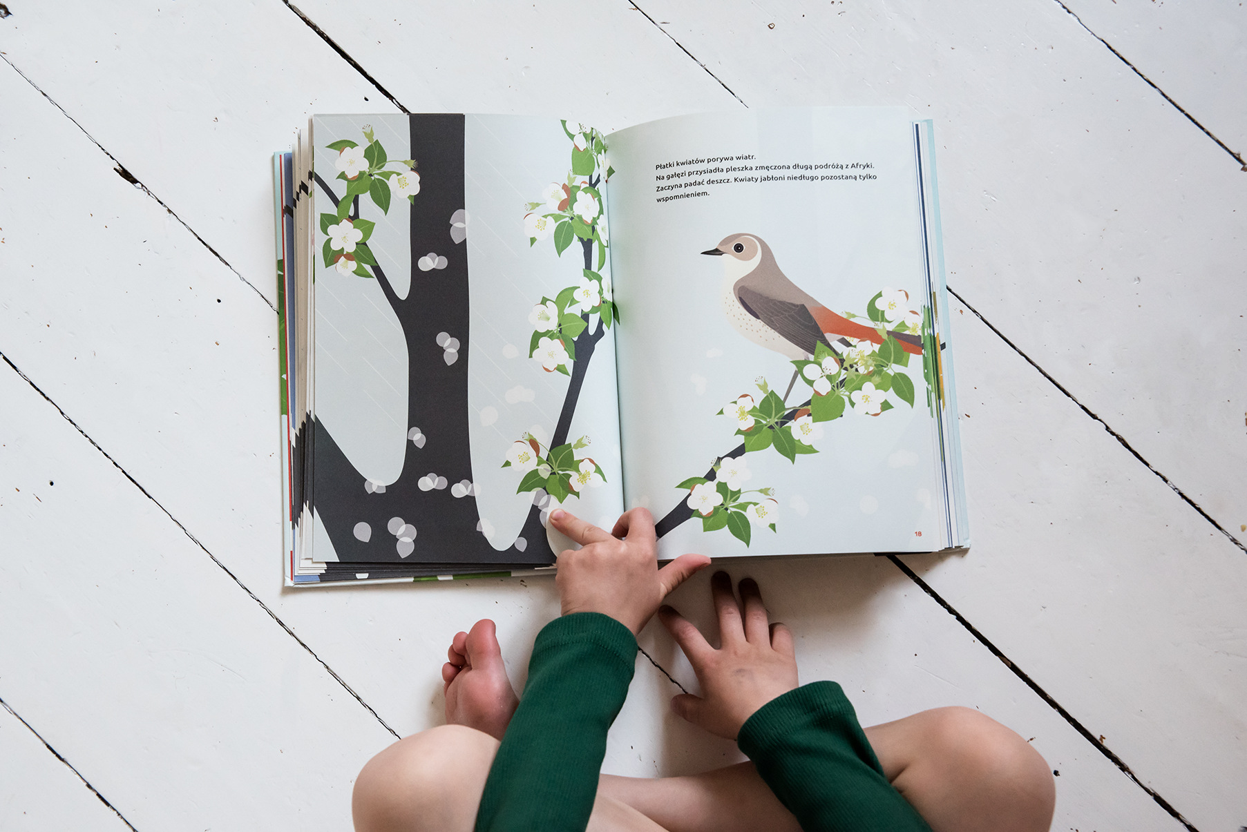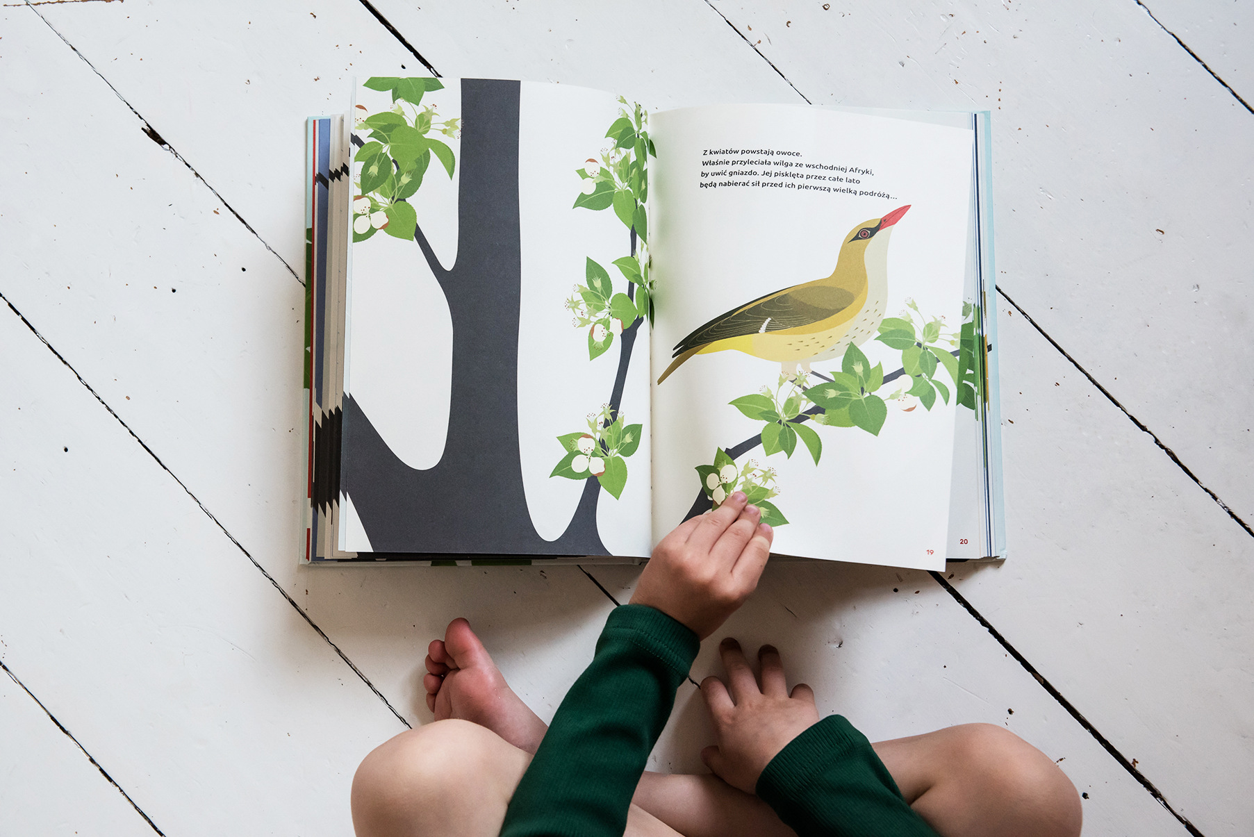 Przez 52 tygodnie toczą się niezwykłe losy m.in. modraszki, rudzika, pokrzywnicy i makolągwy, spięte malowniczą okładką książki autorstwa Anny Crausaz. Dowiemy się z niej, które ptaki zasmakowały w pąkach jabłoni, które spędzają większość czasu w locie, a które o zmierzchu rozpoczynają swój śpiewny warkot, ku utrapieniu całej reszty leśnej gawiedzi. Doskonale podane ciekawostki, opisane prostym, ale dźwięcznym i zasobnym w ładne słowa językiem, okraszone zachwycającymi ilustracjami – trzeba to mieć w swojej bibliotece.