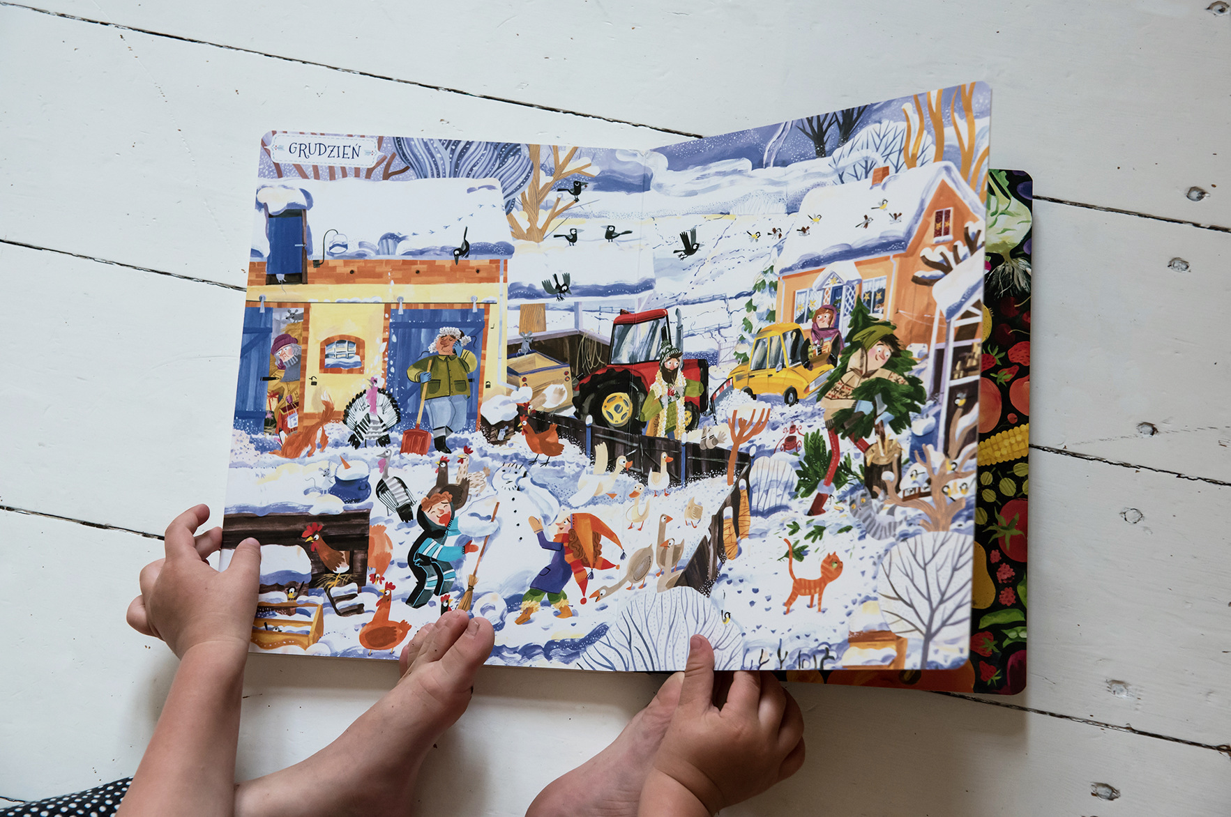 Ta pozycja to wielka radość, zarówno dla szczególarzy, jak i bacznych obserwatorów natury. Akcja bowiem dzieje się na wsi, a gdzie ciekawiej i gwarniej niż tam, wśród pracujących w pocie czoła rolników i gromady zwierząt? Spójrzcie tylko na zasiewy, zbiórki plonów, ogniska i pikniki, sianokosy i grabienie pożółkłych liści, a wreszcie radosne kuligi i bitwy na śnieżki. Wielka przyjemność i dużo łatwo przyswajalnej wiedzy, w sam raz dla malucha.