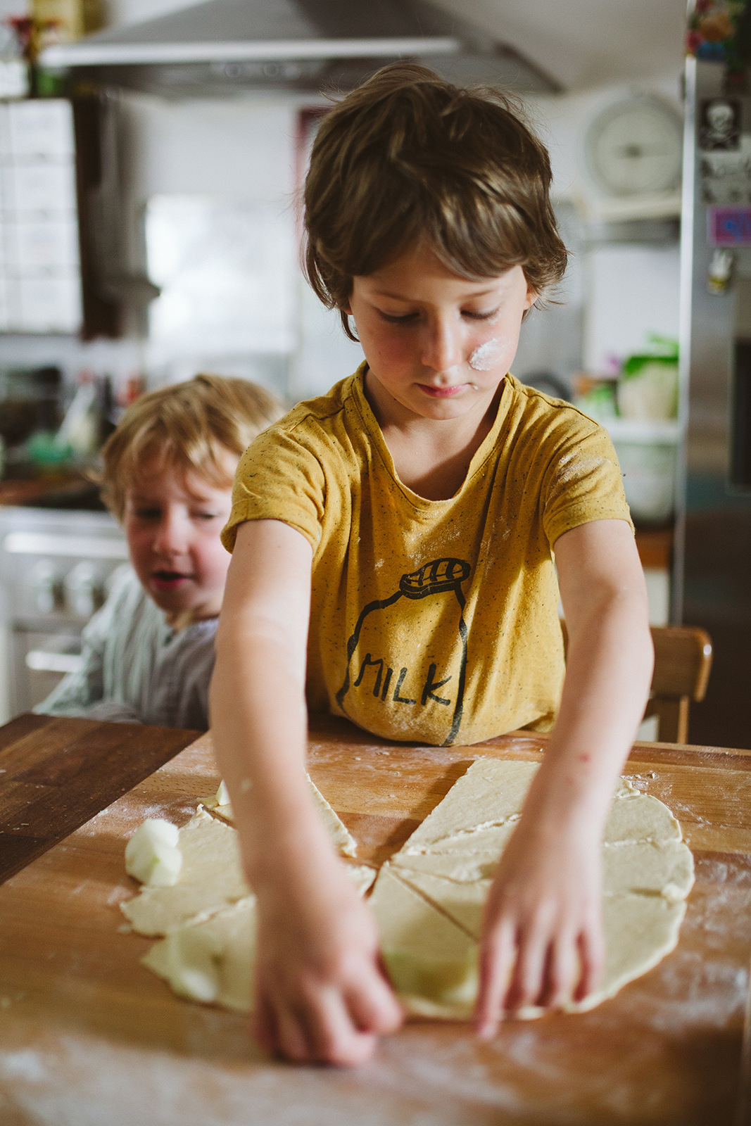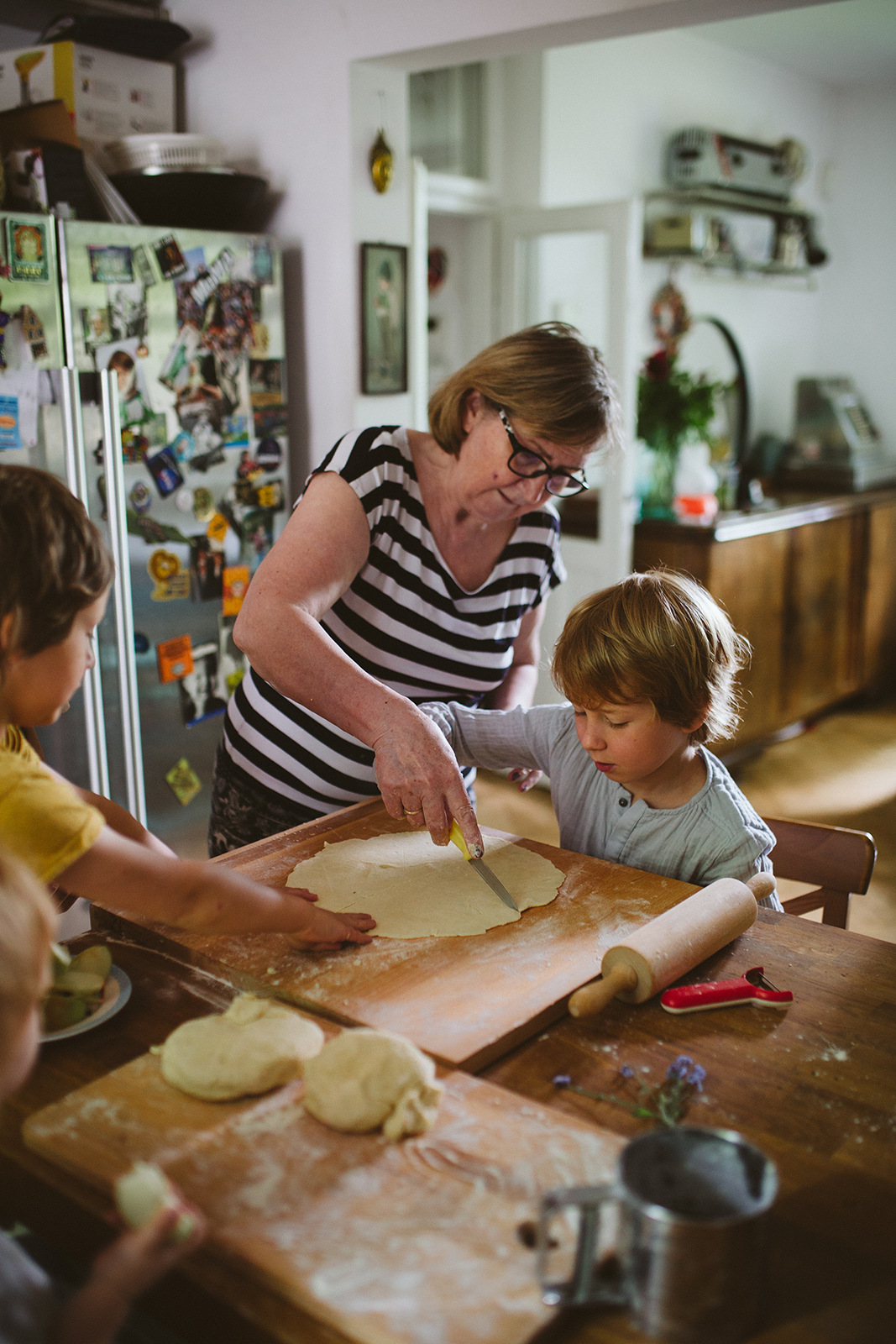 No właśnie. Kiedyś obecność kilku pokoleń w kuchni była czymś normalnym. Dziś zazwyczaj przechwytujemy od mamy pyszności zapakowane do słoików i pudełek i lecimy dalej. Gdy jednak babcia pojawi się u nas na dłużej, kuchnia przyciąga jak magnes. Tak jest u Kasi, która zaprosiła nas na deser robiony rękami trzech pokoleń. Takie rogaliki robi tylko babcia!