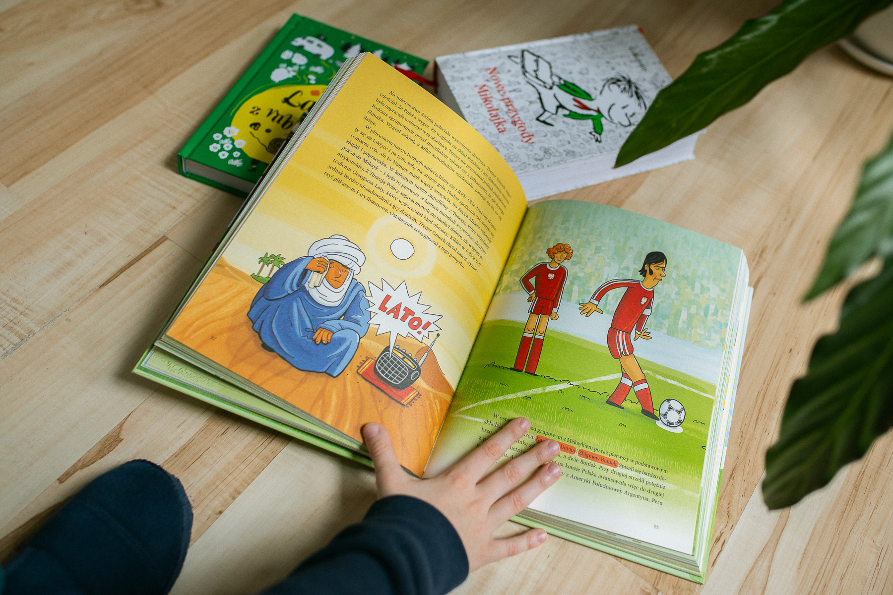 Seria o Mikołajku to zdecydowanie numer jeden na Frankowej liście książkowej. Wszystkie części. Najpierw czytane przez nas, teraz w formie audiobooków czytanych przez Macieja i Jerzego Stuhrów. Niemal co wieczór je odświeżamy – opowiadają o literackich wzlotach syna jego uważni rodzice. „Nowe przygody Mikołajka” Franek czyta na okrągło, nie mogąc się oderwać od wartkich opisów przygód, wpadek i tarapatów, w jakie wpadają tytułowy bohater wraz z Euzebiuszem, Alcestem i Gotfrydem. A kiedy Frankowi doskwiera niedobór literatury przygodowej, sięga po „Lato z rabusiami” Siri Kolu z ilustracjami Tuuli Juuseli. Dawid umieściłby tę książkę na półce z literaturą dziecięcą „z dreszczykiem”. Ciekawe, że ze zwykłych rodzinnych wakacji może wyniknąć tak wiele intryg, niewiadomych i tyle rabusiowania. Kolejnym hitem Frankowej biblioteki jest pozycja pt. „To jest futbol!” – jak mówią rodzice: Piłkarskie publikacje są ostatnio zdecydowanie najchętniej studiowane przez Franka. Wynika to z jego ogromnego zainteresowania tematem. W książce Michała Gąsiorowskiego z ilustracjami rysowniczej rodziny Surmów: Agnieszki, Przemka i 10-letniej Malwinki, znajdziecie pełną historię piłki nożnej wraz z ciekawostkami, frapującymi zarówno wielbicieli futbolu, jak i sceptyków i żółtodziobów.