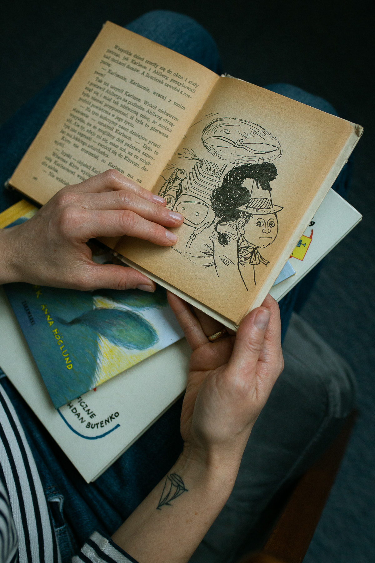 „Karlsson z dachu” autorstwa Astrid Lindgren to pierwsza samodzielnie przeczytana książka Anuli. Chropowata faktura pożółkłych stron oraz zapach piwnicy przenosi w czasie – wspomina. Opowieść o Karlssonie, który za pomocą przymocowanego do pleców śmigła eksploruje Sztokholm, figluje, psuje szyki dorosłym i poprawia humory dzieciom, błyskawicznie zjednuje sobie czytelnika i trzyma w nierozerwalnym, kumpelskim uścisku już na zawsze. Podobnie rzecz się ma z książeczką Ulfa Starka „Czy umiesz gwizdać, Joanno?”, ciepłą jak chleb i łagodnie motywującą do zaangażowania w relacje. Tak o niej mówi Anula: Ta książka to dobry przykład na to, jak w sposób prosty pisać o rzeczach ważnych do dzieci, a może i nie tylko do dzieci. O rzeczach trudnych i smutnych, o przyjaźni międzypokoleniowej i o stracie. Romantyczna historia o potrzebie posiadania dziadka – mądrego gaduły z zasobem opowieści na każdą okazję i każdy temat, wdrapującego się na drzewa i konstruującego latawce bez słowa skargi – rozmiękcza także moje serce. Tym samym przybijam z Anulą wysoką piątkę.
