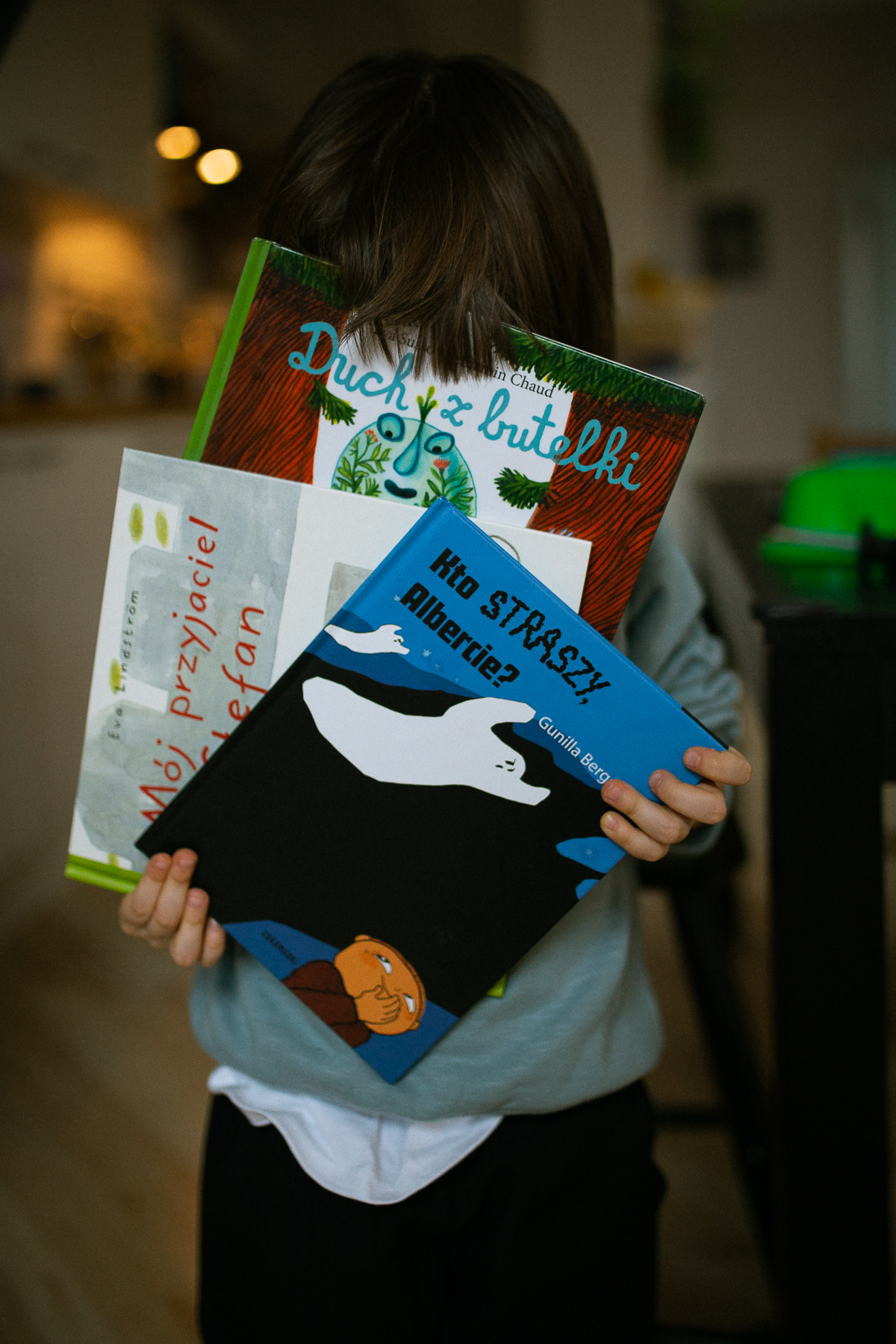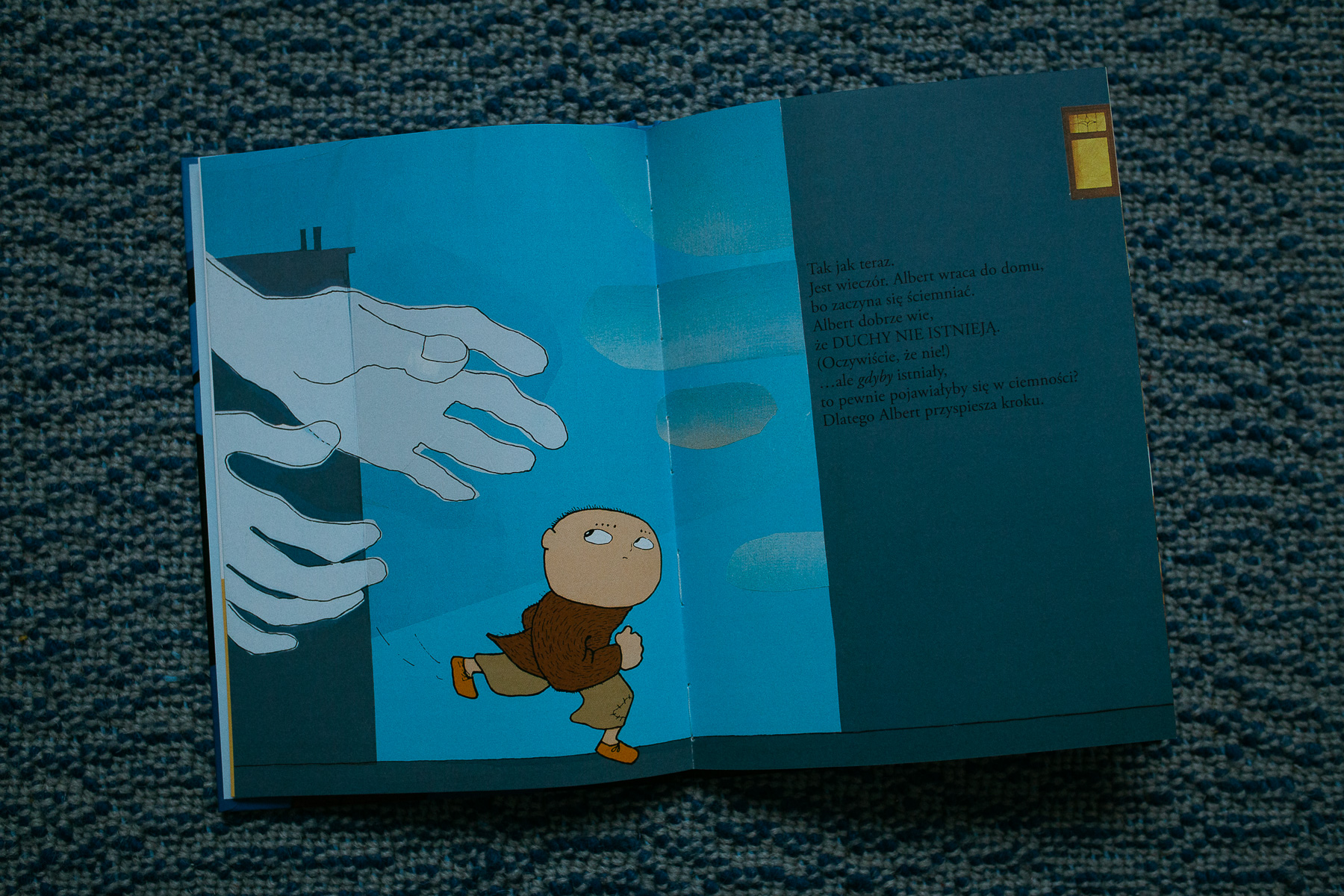 Tematykę duchów podejmuje także książka na drugiej pozycji w osobistym rankingu Janka: „Kto straszy, Albercie?” szwedzkiej pisarki i ilustratorki Gunilli Bergström: Seria z Albertem cyklicznie wracała do nas z biblioteki, ale teraz ulubione części mamy już zakupione. „Kto straszy, Albercie?” to jedna z pozycji, która co jakiś czas do nas wraca, a jej tekst możemy już czytać z zamkniętymi oczami. Trudno nie kochać Alberta przeżywającego wszystkie kłopoty, wahania i troski, jakie tylko mogą się przydarzyć kilkulatkowi. W książce o duchach Albert mierzy się z siłą zdrowego rozsądku i rywalizującą z nią mocą wyobraźni. Wyjście z sytuacji przynosi dopiero zmierzenie się oko w oko z lękami, czyli z… białą, schnącą na sznurku koszulą.