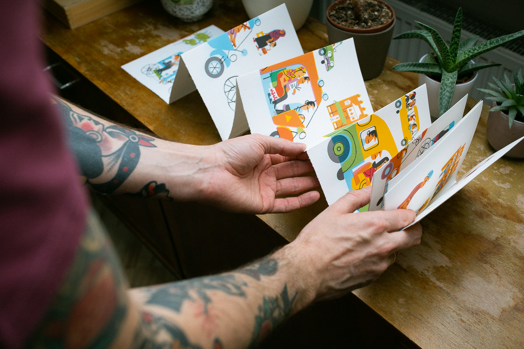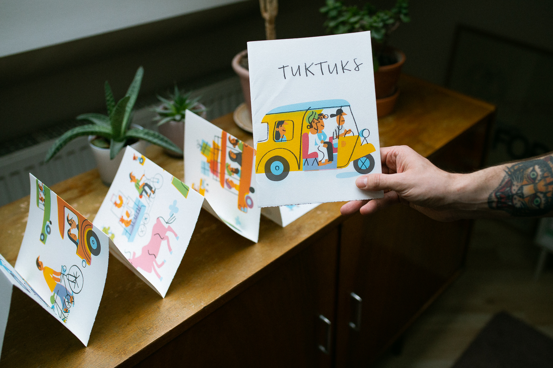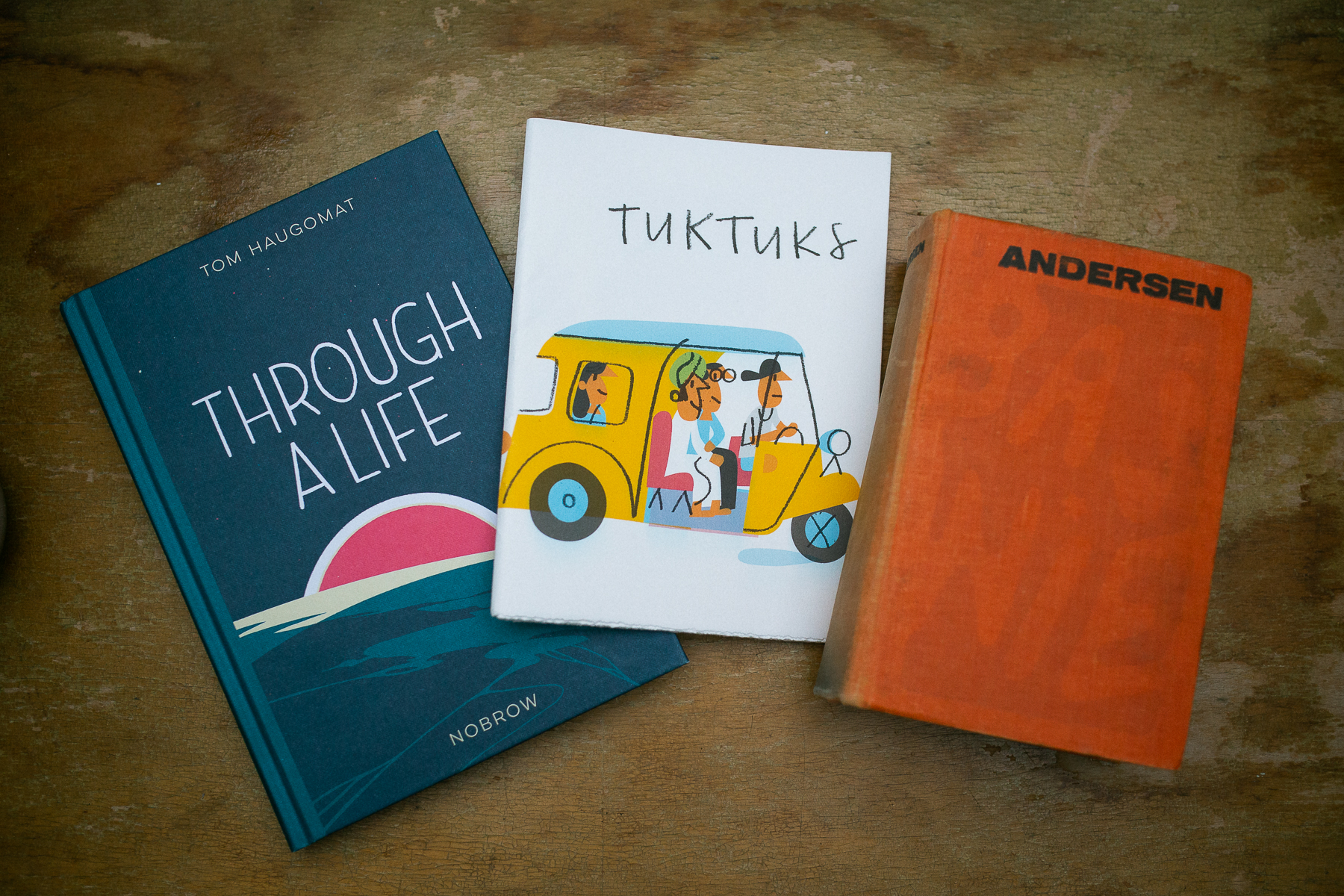 Swoją książkową opowieść Dawid rozpoczyna od „Baśni” Hansa Christiana Andersena: Na początek podróż sentymentalna. Książka, którą dziadek Janek podarował mojemu tacie za dobre wyniki w nauce w 1969 roku. Aktualnie przekazana naszym synom. Jej gruby pomarańczowy grzbiet przyciągał mój wzrok przez całe dzieciństwo. Kto jej nie pamięta? Prężyła się na półce mojej i półce Olgi, bohaterki drugiego odcinka Tu się czyta. Jej ilustracje są mocne i wymowne, wprawiające w drżenie każde kilkuletnie zaczytane stworzenie. Dawid zapowiada, że wyczerpał temat baśni i zamierza teleportować się w nieco inne literackie rejony: Z racji tego, że Anula z chłopakami wybrali mnóstwo świetnych rzeczy do czytania, postanowiłem skupić się raczej na moich ulubionych pozycjach ilustracyjnych. „Tuktuks” to limitowany (50 sztuk) zin Petera Allena, na który składa się zbiór jego ulubionych ilustracji wykonanych w 2018 roku. Oprócz walorów ilustracyjnych, warto wspomnieć również o samym papierze. Całość została wydrukowana na rozkładanym pergaminie o grubości 125 g – istny cukierek, który zatrzyma wzrok każdego. Multikolorowe cacko, trzeba się zapoznać.