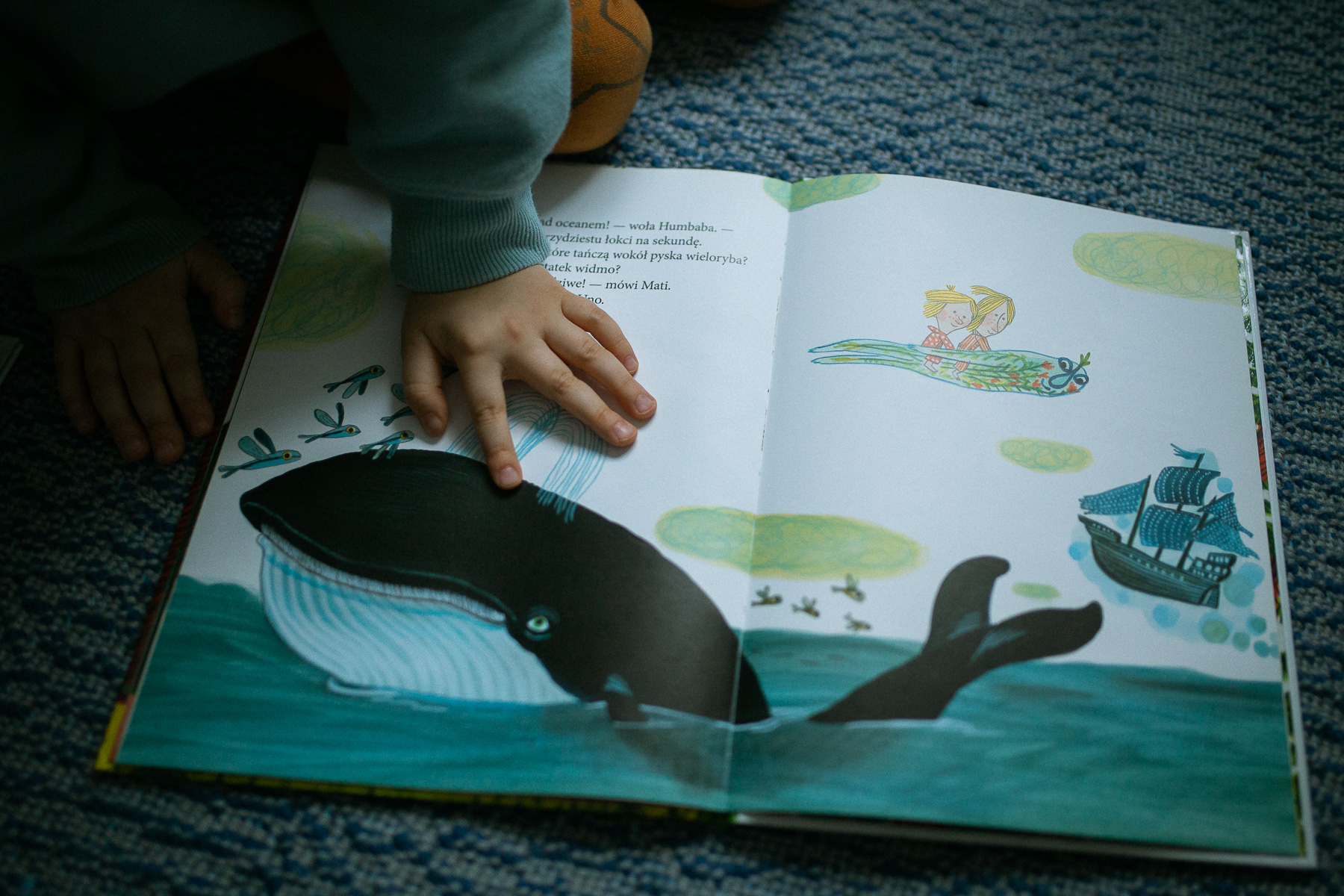 Mati, Uno i Humbaba wparowali na pierwsze miejsce Jaśkowego rankingu i bezwzględnie je okupują, do odwołania. Przygody dwóch braci, którzy wracają z targu staroci z tajemniczą niebieską butelką, w której uwięziony jest duch cedrowego lasu, to ulubiona lektura najmłodszego syna Anuli i Dawida: Ta pozycja jak bumerang wraca do nas z bibliotecznej półki. Duchy, pająki i czarownice okupują top listę naszego rozczochranego 4-latka. „Duch z butelki” z ilustracjami Benjamina Chauda towarzyszy nam każdego wieczoru, a zaklęcie „Anzu! Aruru! Apsu!” działa już w naszym domu. Fajne jest to, że chłopaki bezbłędnie rozpoznają ilustracje Chauda, głównie za sprawą serii książek o słoniu Pomelo – kontynuuje Dawid. A ja przypominam przy okazji link do wywiadu z tym francuskim ilustratorem.