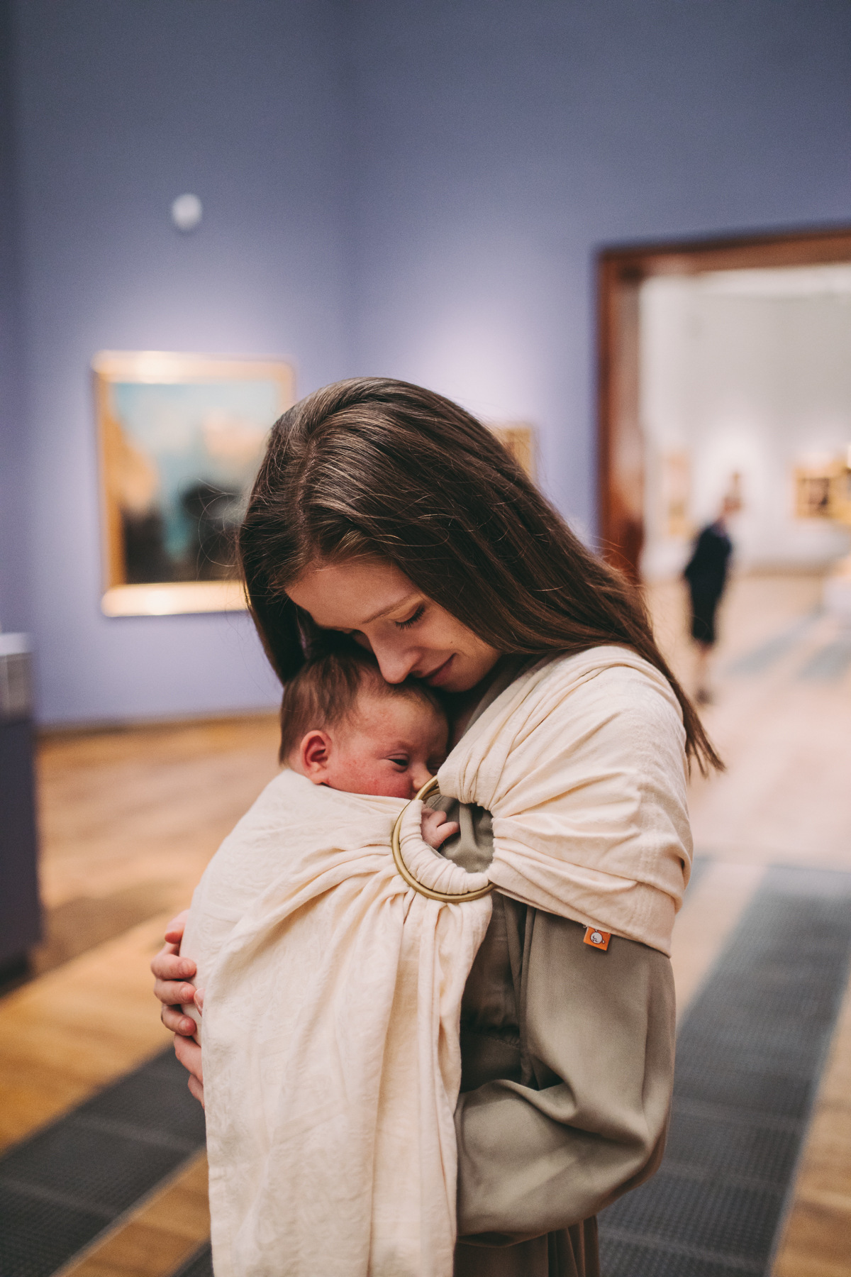Dziś wycieczka niecodzienna, Paulina i jej córki: Liliana (19 miesięcy) i miesięczna Róża ruszyły na salony. To debiut Róży w Muzeum Narodowym. Dzięki chuście, Liliana bywała tu z mamą nie raz. Teraz czas na nowy porządek. Młodsza utulona, starsza ciekawa wszystkiego, a Muzeum, jak zawsze gościnne. Nie bójcie się tych poważnych przestrzeni, znajdziecie tu spokój nawet na karmienie, z widokiem niecodziennie pięknym. Tulenie w Tuli wśród obrazów Chełmońskiego, Gieymskiego i innych wybitnych malarzy? Paulina, po pedagogice małego dziecka, jest czuła na sytuacje, które mogą rozwijać jej dzieci. Oczywiście nie chodzi tu o edukacje artystyczną, ale o bycie, oglądanie i rozmawianie, choćby o tym, na którym obrazie jest koń, a na którym bocian. Zobaczcie.