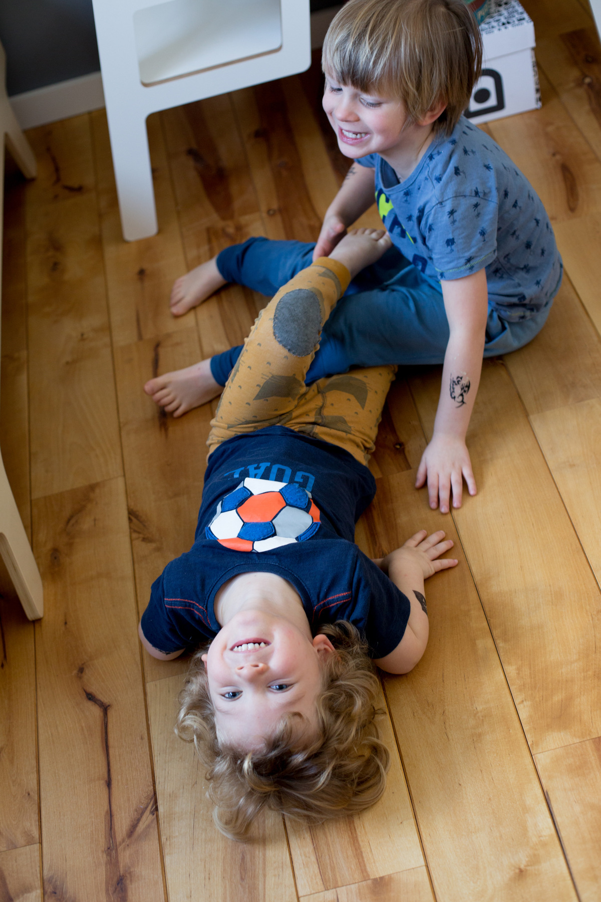 Otwarta kuchnia sprawia, że rodzice łączą przyjemności kucharskie ze słuchaniem ulubionej muzyki i obserwacją zabaw chłopców w salonie, a tych wszędzie jest pełno! Trudno chociaż na chwilę zatrzymać ich w jednym miejscu. Biegają, skaczą, a uśmiech nawet na chwilę nie schodzi im z buzi.