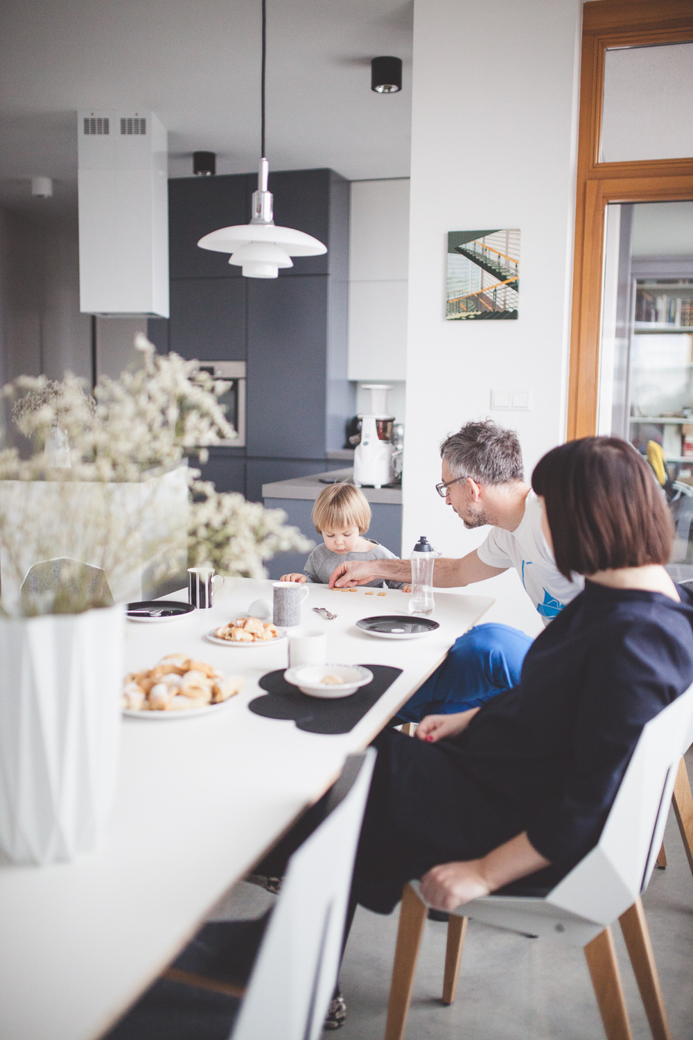 Zaczynamy jak zwykle od kuchni i od stołu. Siadamy z ciastkami, herbatą i trójką bliskich sobie ludzi, których po prostu fajnie się ogląda. Ignacy jest wyczekanym dzieckiem, na które oboje bardzo się cieszyli i któremu Marysia i Mateusz poświęcają 100 proc. uwagi jak tylko przekraczają próg domu. Zostawiają za sobą pracę, ważne spotkania, pilące terminy i rysują, gotują i rozmawiają.