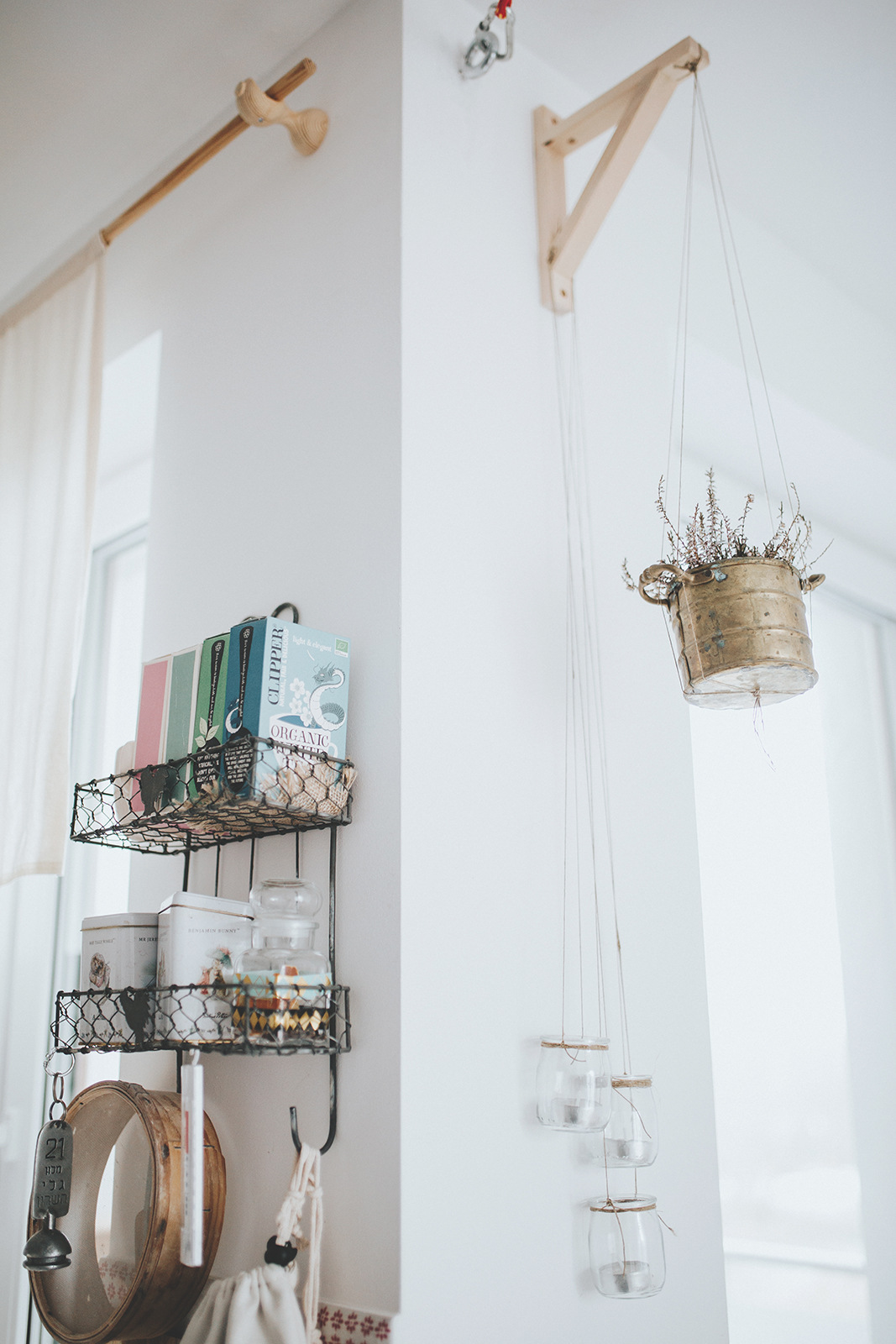 Ponieważ jesteśmy w sercu domu, dookoła nas wiszą rodzinne zdjęcia – i świetny patent z wykorzystaniem do nich wieszaków!